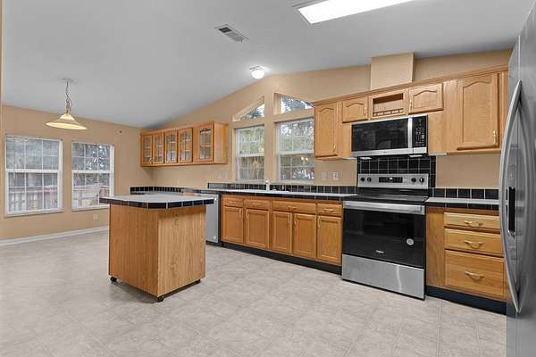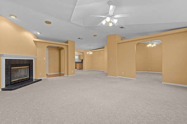 - Ceiling Fans, Electric Range, Family Room, Fireplace, Kitchen Island, Laminate Counter, Laundry Closet, Laundry/Utility Room, Living Room, Microwave, Separate Dining Room, Split Floor Plan, Walk-In Closet(s), Water Softener, Wood Cabinets, w/ Hookups