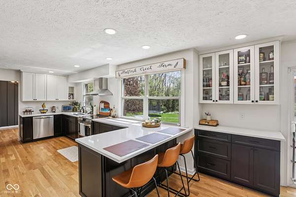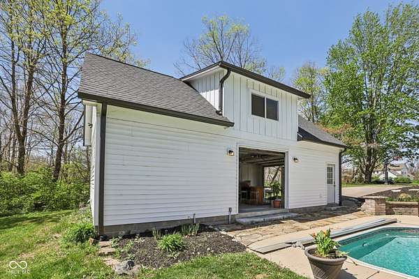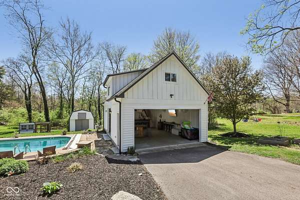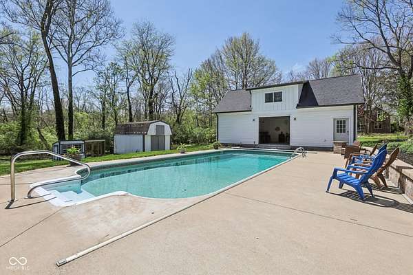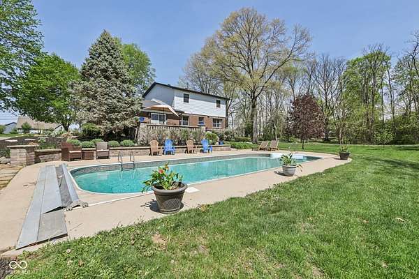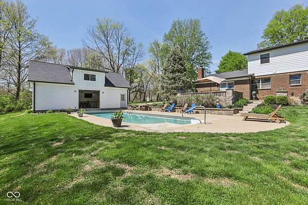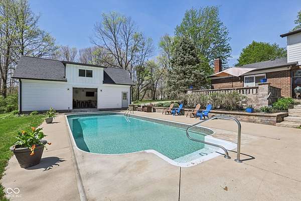Set on 1.8 private, wooded acres in Fishers with HSE Schools, no HOA, a salt-water pool, and two-story pool house has been totally transformed and is STUNNING. The fully renovated gourmet kitchen overlooks the backyard and has tons of storage and counter space. The main level offers a spacious family room, a flex room perfect for a home office or workout space and a large dining room anchored by a wood burning fireplace. Bathrooms have been updated with new countertops, painted cabinets, and new lighting throughout. The backyard is a showstopper. A custom two-story pool house, built in 2020, features a bar with beverage fridge, a lounge area and full guest bath. The in-ground saltwater pool has a newer liner (2022), safety cover (2020) and is ready for its next summer. A built-in stone firepit and professional landscaping round out an outdoor space made for gathering. And every April & May, the lilacs bloom & yes you can smell them. Upstairs in the pool house, a fully spray foam insulated loft is a clean slate ready to become whatever you need, an ADU, game room, teen hangout, home office, or guest suite. The options are endless. Every major system updated: roof (2019), HVAC (2020), new well and pump (2018), water softener (2018), new siding (2021). This is a move-in ready property with years of investment already done. No subdivision. No HOA. No compromises. Close to Geist Waterfront park, Flat Fork Creek Park, Schoolhouse 7 Cafe, Downtown Fortville with great restaurants and shopping and it could be yours!