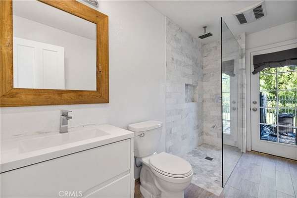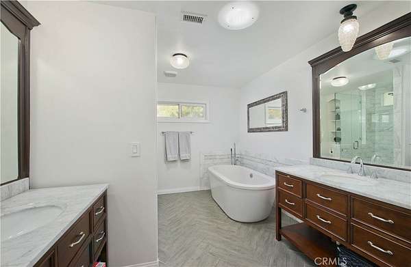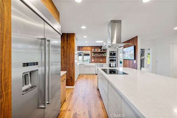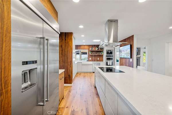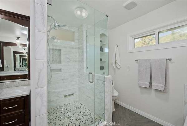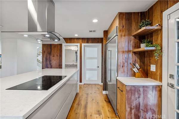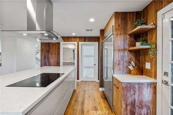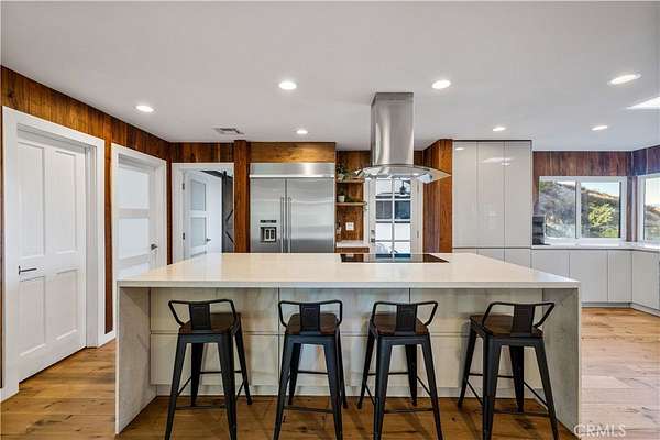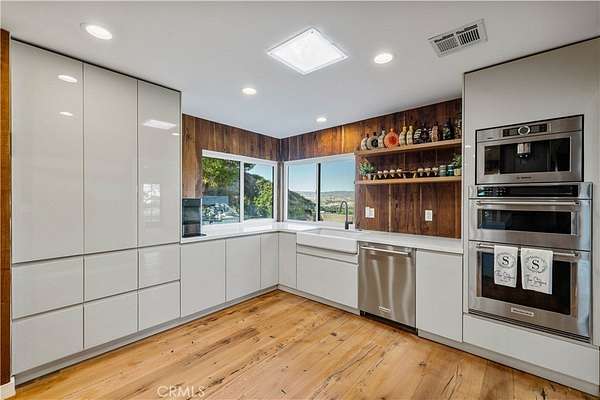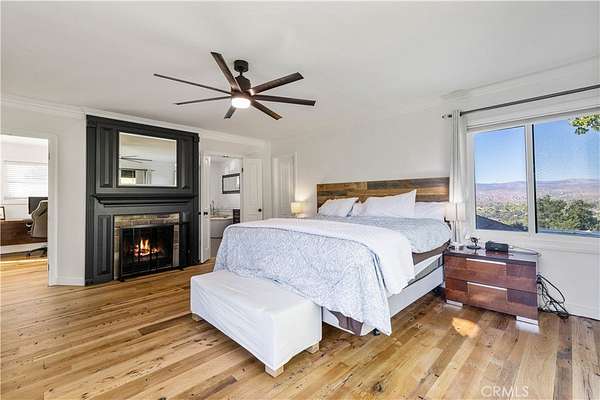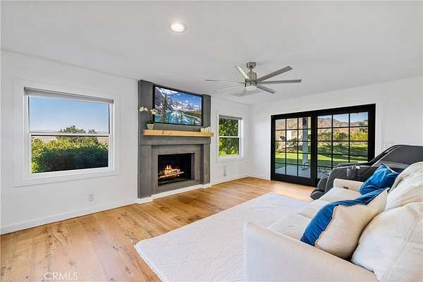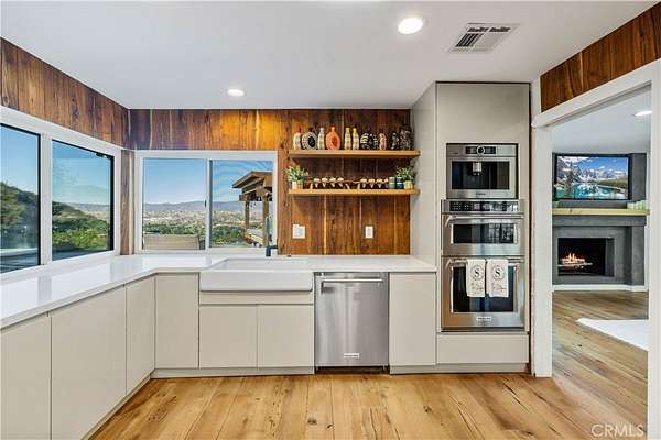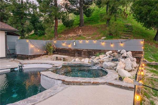 Nestled behind private gates atop a secluded Sand Canyon lot, this stunning move-in-ready home offers over 3,000 sq ft of beautifully updated living space with 4 spacious bedrooms and 3 elegant bathrooms. Enjoy sweeping panoramic views of the surrounding mountains and sparkling city lights -- among the best in Sand Canyon. Inside, discover an inviting open layout with reclaimed white oak flooring and a remodeled kitchen featuring a striking reclaimed walnut backsplash, combining modern design with eco-conscious touches. The spacious primary suite offers a cozy fireplace, walk-in closet, and spa-like en-suite bathroom with dual sinks, a luxurious shower, and freestanding soaking tub. Perfect for both entertaining and everyday living, the home features a dedicated office, Cat6 wiring throughout, 11 mounted TVs, and Lutron smart automation for effortless control of lighting and climate. Energy efficiency shines with a paid-off solar system, two Tesla Powerwalls, a new roof, and upgraded electrical panel (2021). Step outside to a resort-style backyard showcasing a sparkling pool, a custom wood-fired pizza oven, and breathtaking views from every angle. A two-car garage on the lower level provides ample parking and storage, and there's exciting potential to build an ADU for guests or rental income. Located near horse trails, award-winning schools, shopping, and the newly renovated Sand Canyon Country Club, this home offers the perfect blend of privacy, technology, and luxury living. 16337 Ravenglen Road truly defines serenity and sophistication -- welcome home.