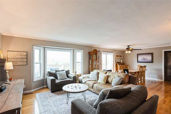 Scenic Winterset Acreage - Earlham Schools - Ranch Home on 11+ Acres with Walkout Basement & Hobby Farm Features! Discover your dream homestead just minutes from Winterset! This beautifully maintained ranch-style home sits on 11.2 acres of rolling countryside and offers 4 bedrooms, 3 full bathrooms, and a fully finished walkout basement. Step into the heart of the home - a chef's kitchen with quartz countertops, a large island with seating, hammered copper farmhouse sink, and a spacious walk-in pantry. Hardwood floors run throughout the main level, and thoughtful touches like heated tile in both main floor bathrooms, central vacuum, and new Andersen windows bring comfort and style. The flexible layout includes a bonus room off the primary suite - perfect for a nursery, office, or quiet retreat - and dual laundry areas on both the main and lower levels. Downstairs, enjoy a radiant-heated floor and an expansive family room ideal for entertaining, movie nights, or relaxing with friends and family. Outside, the hobby farm setup is ready for your rural lifestyle: a large outbuilding (40x60), chicken coop, fenced pastures, two fenced gardens, and a fruit tree orchard. A new roof (2021) provides lasting peace of mind. New AC installed June 2025!! Has a spot for a future pond Whether you're looking to homestead, garden, raise animals, or simply enjoy wide open space with modern amenities, this one-of-a-kind acreage offers it all. Country living with convenience