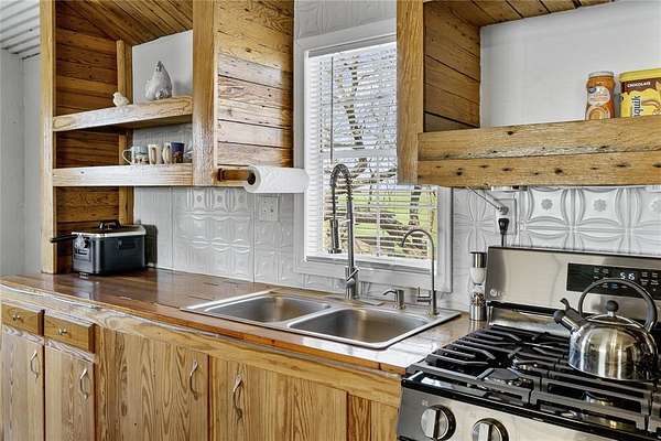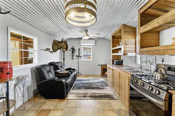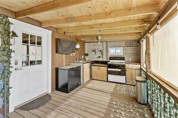 Inside, the home maximizes every square foot with an open-concept kitchen and living area, making it ideal for relaxing and entertaining. The bedroom and bathroom offer comfortable accommodations, and the design of the home ensures a cozy atmosphere throughout.