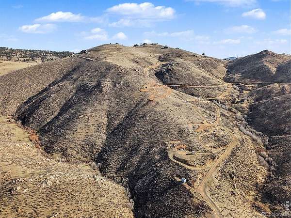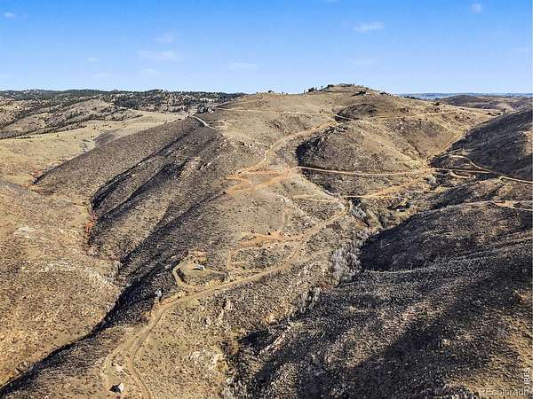 Almost 7.5 acres of incredible mountain and Poudre Canyon views, with 470 feet of the western property line abutting the Stevens Gulch Land Trust - 480 acres of big and small game hunting within Roosevelt National Forest. The surrounding land offers an abundant trail system with access for hunting, fishing, and exploring. The HOA maintains, stocks, and manages three fishing ponds; each membership includes two fishing passes, with guest passes available for a modest daily fee. HOA also covers year-round maintenance, drinking water access, and an RV dump. Camp seasonally (up to six months per year) or build your dream home. This large lot was originally two parcels (155 and 156), combined in June 2023, creating two potential building envelopes. Seller has already graded a driveway. No electric, water, or septic.