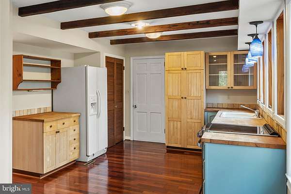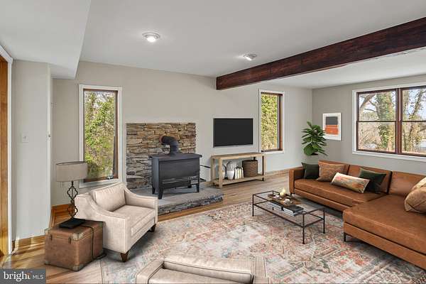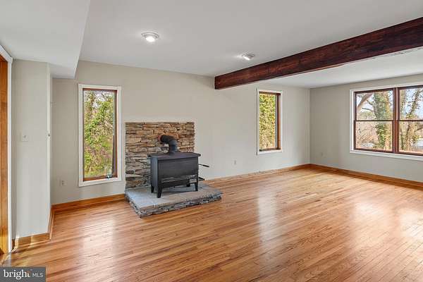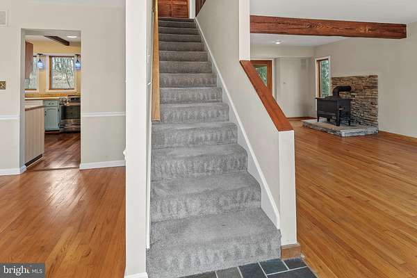 - Breakfast Area, Built-Ins, Carpet, Ceiling Fan(s), Combination Kitchen/Dining, Recessed Lighting, Stall Shower Bathroom, Table Space Kitchen, Traditional Floor Plan, Tub Shower Bathroom, Wood Floors, Wood Stove