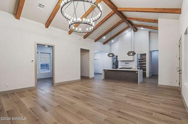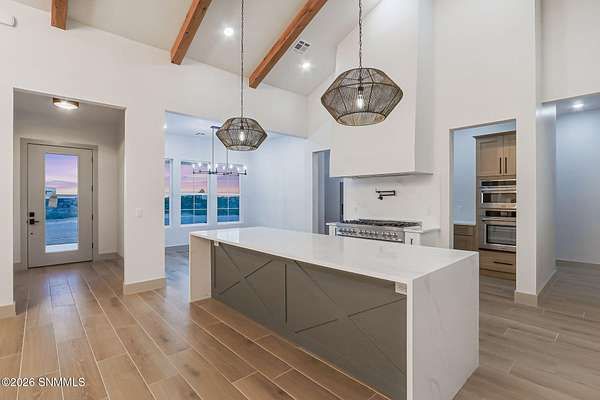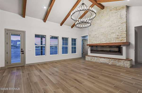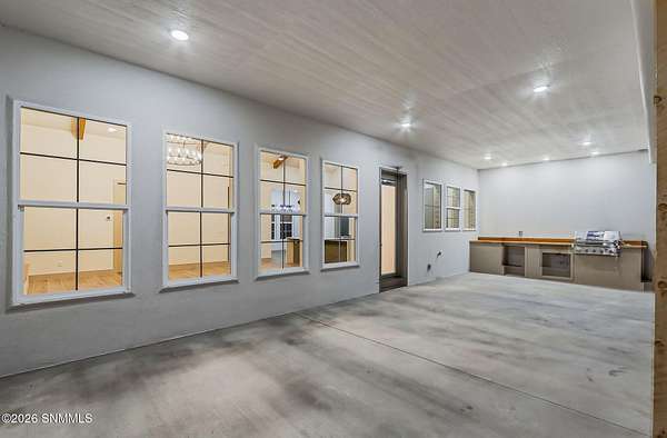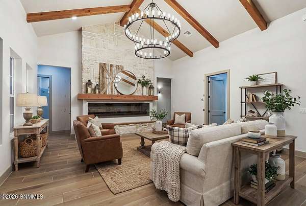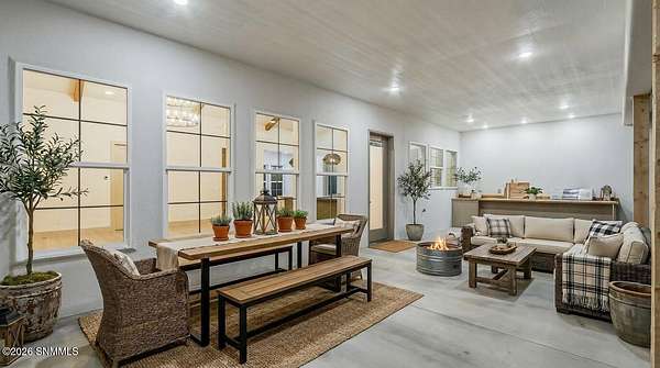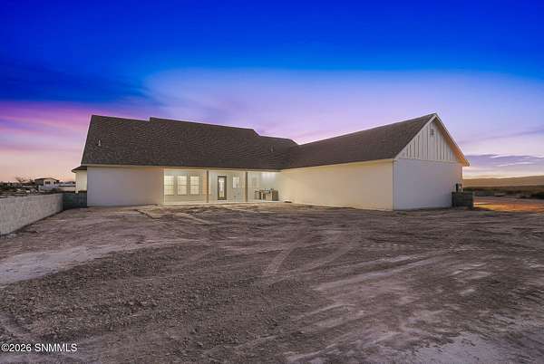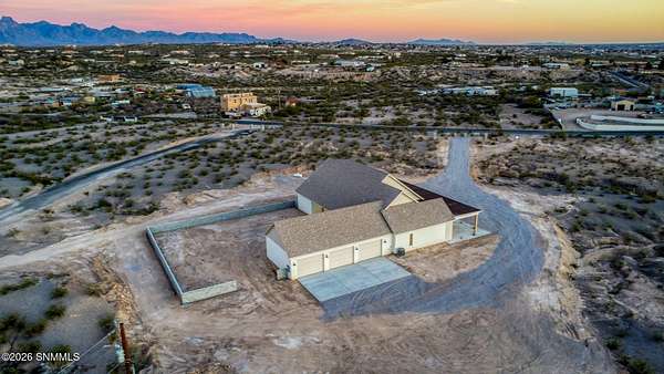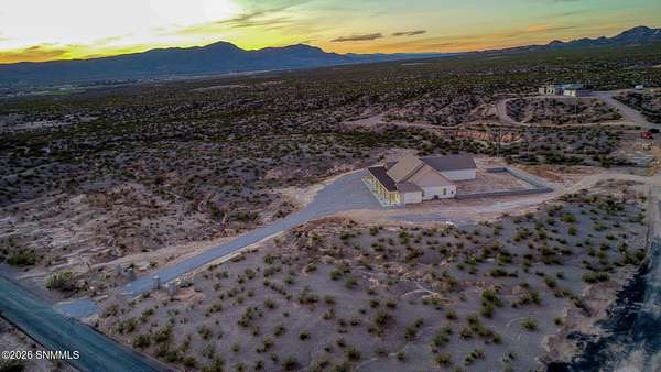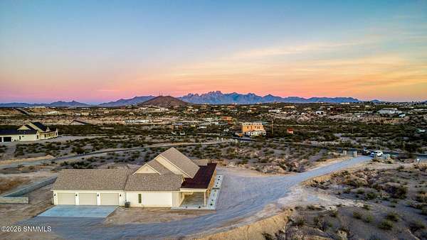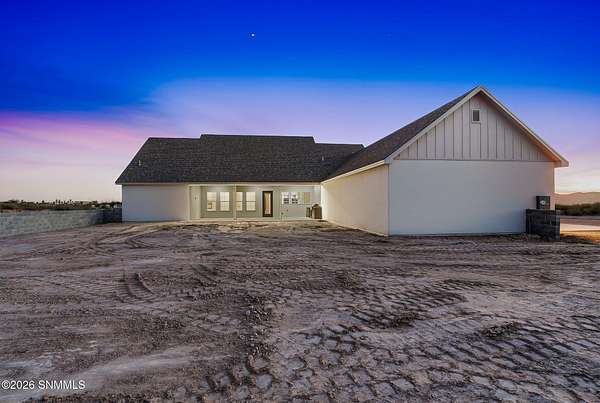 Experience breathtaking views and exquisite comfort in this stunning 4-bedroom, 3.5-bath , 2,770 sq ft farm-style home nestled on 5 sprawling acres. Gaze out to magnificent vistas of the Robledo and Dona Ana mountains and savor spectacular sunsets from your expansive 1,159 sq ft porch, perfect for relaxing or entertaining. Inside, you'll find a thoughtful split floor plan designed for comfort and functionality. The living room boasts cathedral ceilings and a massive fireplace, creating the ideal ambiance for family gatherings or quiet evenings. Enjoy a true chef's kitchen featuring top-of-the-line Z Line appliances and a perfect blend of farm style and modern functionality, with a designated dining area. Retreat to your spacious primary suite with a walk-in closet while guests or family enjoy the convenience of a Jack and Jill bathroom setup. The home offers an additional office or flex room to accommodate your work-from-home needs or hobbies. Step outside to the expansive backyard, complete with an extended
