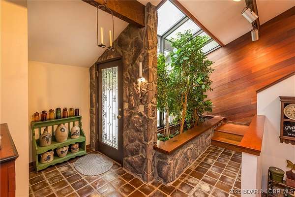 Hidden away on 5.81 acres in Jefferson City, this exceptional property offers complete privacy. Follow a long private drive that feels like a park. A circular drive leads to a 2 car main-level garage, surrounded by mature trees. The home's striking exterior of wood & glass makes a great first impression. Inside, there is no carpeting--only beautiful wood, ceramic, & imported Italian tile floors throughout. The great room has high ceilings, a dramatic stone fireplace & wet bar. A wall of windows frames a gorgeous view of the woods. Every room is spacious! There are 2 primary suites! The east-wing suite incl. a sitting room, enormous skylit closet w/built-ins, dual vanities, jetted tub, tea bar, & walk-in shower. The west-wing suite offers 2 walk-in closets w/custom shelving & a large bathroom. A dining room opens to a lg deck & a screened porch. A kitchen blends rich textures w/Italian tile floors, custom cabinetry, granite, stainless appliances, & exposed wood beams. Nearby are: breakfast room, butler's pantry, laundry, powder room. Upstairs, is a 2nd office, bedroom, & bath. If you love privacy & natural beauty-but want to be in town, this 1-of-a-kind property is a rare find!