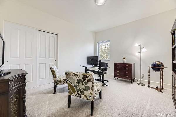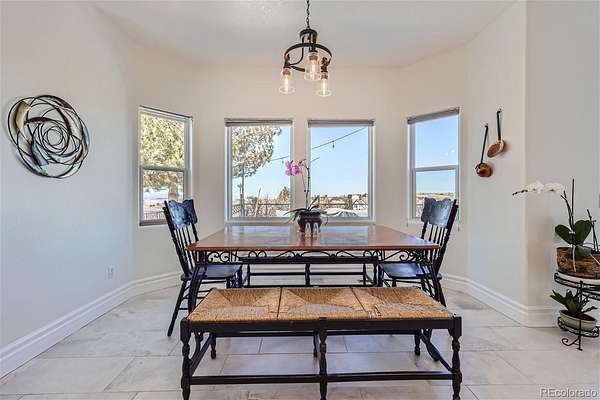 Located in the peaceful Keene Ranch community, this property offers the rare balance of open land, mountain views, and everyday convenience, close enough to the city for dining, shopping, and entertainment, yet far enough out to enjoy quiet mornings and star filled nights. Located outside city limits in unincorporated Douglas County, providing 4% sales tax and lower property taxes. Designed with main floor living in mind, the home features a primary bedroom, laundry, and office all on the main level, allowing for comfort and accessibility now and for years to come. Upstairs and beyond, you will find three generously sized bedrooms, plus an additional flex space with solid doors, perfect for guests, hobbies, or private work from home needs. Recent 2024 updates include a new roof, new deck, new carpet, fresh interior and exterior paint, and a new pool pump, providing peace of mind and minimizing future maintenance. In addition, a new electric locking pool cover was installed. The home is served by a private well, with no monthly water bill, a valuable long term benefit. Step outside to an expansive deck overlooking a private pool, framed by mature landscaping and uninterrupted mountain views. It is a setting designed for slow mornings, relaxed evenings, and everyday enjoyment of the outdoors. This is a home for those who value space, privacy, and the ability to live comfortably without sacrificing access to the city, just seven minutes to the highway and everything beyond.