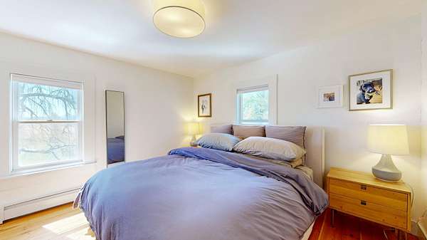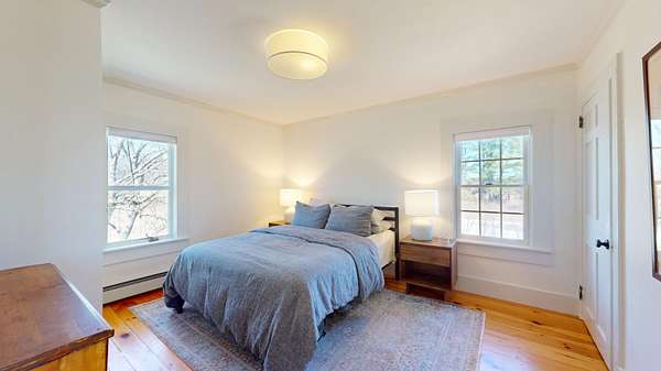 What’s old is new again in this beautifully reimagined home, thoughtfully rebuilt from the studs up to meet modern living standards while preserving its timeless charm. Fully reinsulated and intelligently reconfigured, the property blends character with comfort at every turn. Newly added downstairs windows frame sweeping eastern mountain views and southern valley vistas, filling the home with natural light. A tiled corner mudroom provides practical, stylish space for seasonal gear and everyday essentials. Inside, you’ll find stunning original floors, a restored banister, and classic fir stair treads that showcase the home’s historic appeal. Set on 3.5 level acres, the property features an expansive east-facing deck off the kitchen and dining area—perfect for taking in breathtaking Green Mountain views. Thoughtful exterior improvements include perimeter drainage to the eastern field and rebuilt cellar window dry wells for peace of mind. The full basement offers abundant bonus space and storage, including laundry and home gym. There is a new metal porch roof and low-maintenance composite shutters designed to match the home’s period style. Comfort is ensured year-round with an oil boiler, a Vermont Castings propane stove in the living room, and a Mitsubishi 18,000 BTU heat pump for supplemental heat and cooling. All this plus two bedroom suites - one on each floor! Ideally located just 4 minutes from Cornwall School and 8 minutes from Middlebury College, the setting is enhanced by a picturesque spruce grove to the west and graceful willows to the south—offering both convenience and natural beauty.