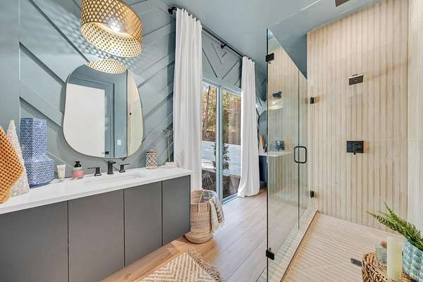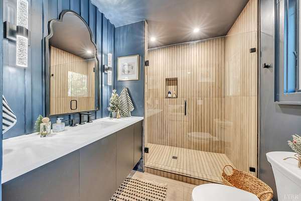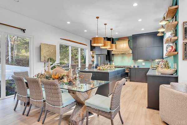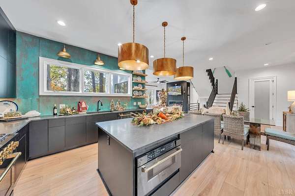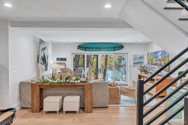 Don't miss this custom designed fully furnished home situated minutes from Hales Ford Bridge for convenient shopping, dining, marina, & all things lake life. Whether you're seeking a primary residence, vacation escape, or an income producing property, this stunning new construction blends modern design w/ high-end details. Enjoy a light-filled, open layout, lush landscaping, & designer finishes throughout. The custom kitchen wows w/ upgraded appliances, copper backsplash, & statement lighting. Indoor-outdoor living is effortless w/ premium touches at every turn. The main-level primary ensuite features gorgeous views w/ private outdoor space! Upstairs offers a spacious loft, two bedrooms, & a full bath. On county sewer, no guest count limits as with septic. The terrace level adds a wet bar, full bath, 2nd laundry, generous rec space, bedroom, & large patio. A bonus room can flex as a bedroom, office, or den. Short term rentals allowed by permit w/ Bedford County.
