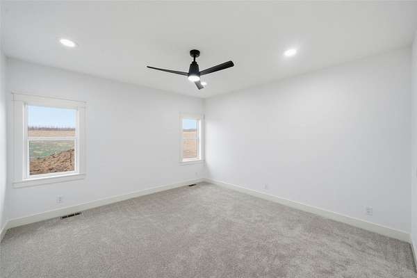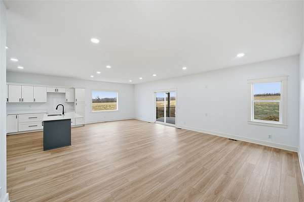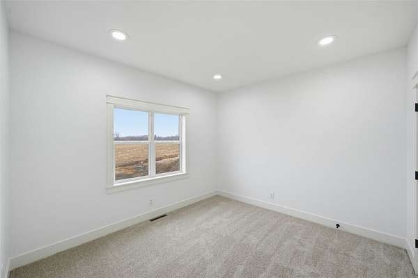 Located just minutes east of Indianola, this newly constructed custom home sits on 2.20 acres with convenient access to schools, Pickard Park, the Balloon Fields, Marywood Lakes, Bank Swallow Bend Recreational Area, and nearby amenities. The home offers approximately 1,813 square feet of finished living space with 3 bedrooms and 4 bathrooms, combining quality construction with a functional, well-designed layout. The open-concept main level features a great room that flows into the kitchen and dining area, enhanced by large windows providing abundant natural light. The kitchen is equipped with higher-end, soft-close cabinetry, upgraded flooring, and a seller-paid $1,000 appliance credit. A covered deck with composite decking and ceiling fan extends the living space outdoors and overlooks the surrounding acreage. The primary suite includes a private en suite bath with dual vanities, walk-in shower, and spacious walk-in closet. Two additional bedrooms share a full bathroom and provide flexibility for guests, office space, or additional living needs. A third main-level bathroom and laundry area add convenience. Additional construction and mechanical features include steel beams, solid core interior doors, in-panel GFCI protection, and a septic system designed to accommodate up to six bedrooms. The full walkout basement offers future finish potential. The oversized attached garage offers over 1,200 square feet.