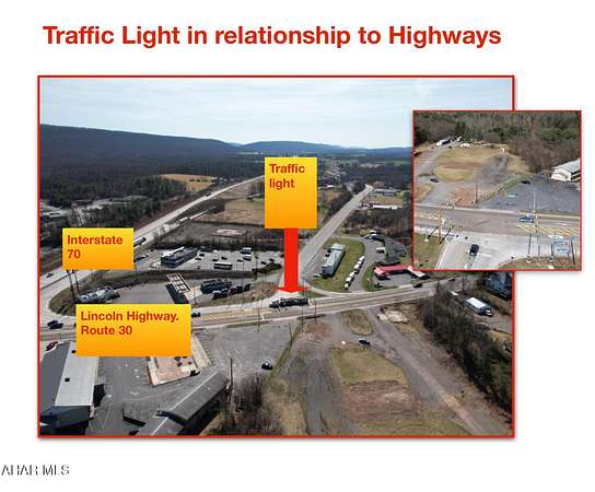 Est $1,492/moPrime commercial location in the heart of Breezewood, PA!! Located just off the PA Turnpike Interchange and Interstate 70, this property offers 5.81 acres with excellent visibility and exposure for any business. Public sewer, drilled well, and electric on site. Great site for a restaurant, hotel, convenience store, retail business, apartment complex, warehouse, service garage, or other businesses. Very easy access to major roads, no zoning, level site, and State Route 30 road frontage make this an ideal commercial lot ready for new development.