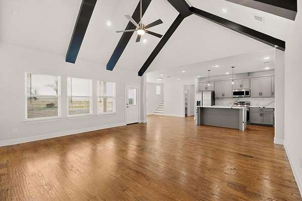 Beautiful new construction modern home situated on 13.11 acres, offering space, privacy, and peaceful country living. This thoughtfully designed property features 7 bedrooms with a versatile layout — 4 bedrooms downstairs, including the spacious primary suite, and 3 bedrooms upstairs along with a game area. The home offers 3 full bathrooms and 1 half bath. The kitchen comes fully equipped with a refrigerator, microwave, dishwasher, and electric range. The builder has also installed gas piping to the range for future conversion if desired. Quartz countertops and custom cabinetry are featured throughout the home. Additional highlights include hardwood floors, foam insulation for improved energy efficiency, and a cozy wood burning fireplace. Outside, enjoy the covered front patio, beautiful acreage with a small pond, and a 2 car garage with an automatic opener. Seller is offering $5,000 in closing cost assistance to the buyer with an acceptable offer. The perfect blend of modern comfort and country charm!