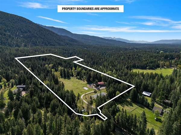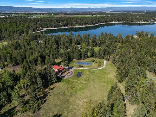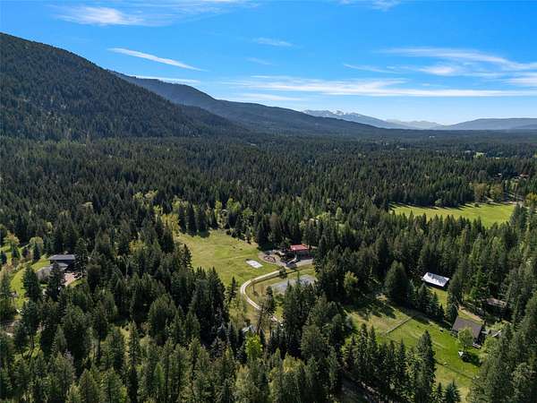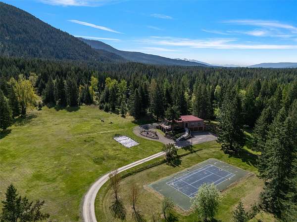 Set on over 16 acres, this remarkable property offers a unique blend of seclusion, easy living, and natural beauty. Backing onto endless public lands, it also provides shared deeded water access just a short distance away to the highly sought-after and exclusive Lake Blaine. The estate features a 4-bed, 3.5-bath, 3500sqft home designed to capture breathtaking mountain views with oversized windows. The layout includes a spacious den, a chef's kitchen, walk-in pantry and an open-concept design ideal for daily living or entertaining. Here is Montana outdoor living at its best with a large deck, hot tub, outdoor fireplace and landscaped grounds. With the multiple barns and shared water rights to Hemler creek, the property has the makings of a wonderful horse property. Additional amenities include a 3-car garage, multi-use court and garden area. This estate represents a rare opportunity, offering a lifestyle where wilderness adventure, lake recreation and absolute privacy converge.