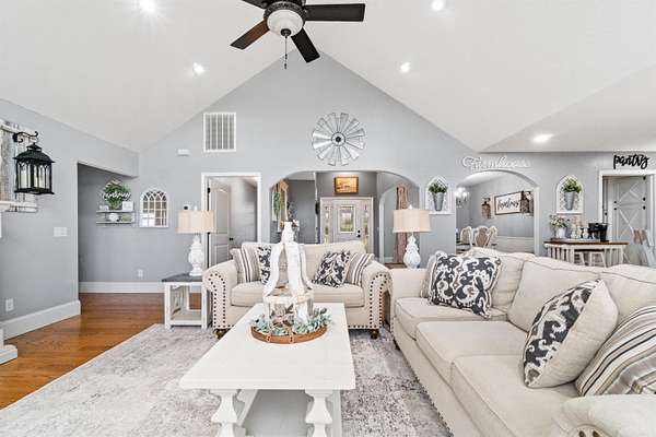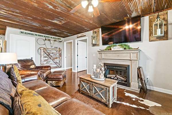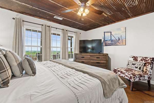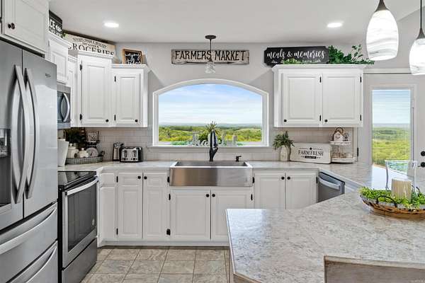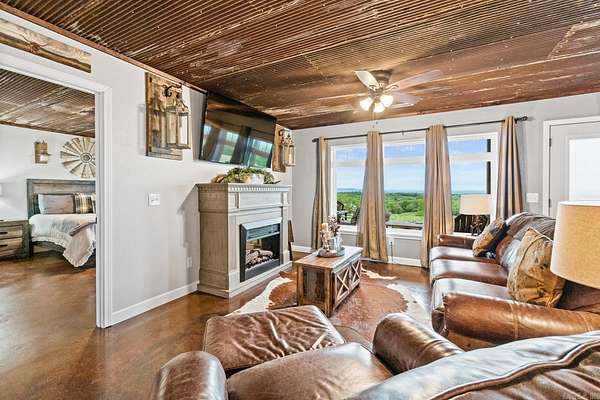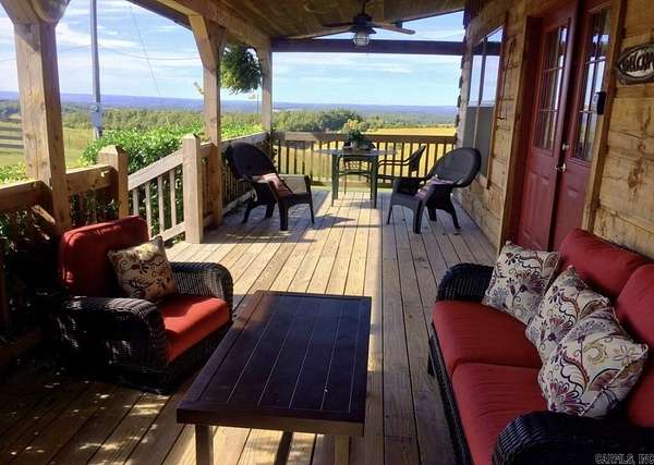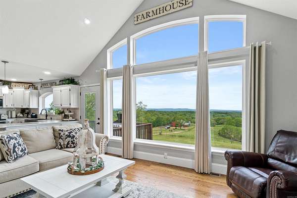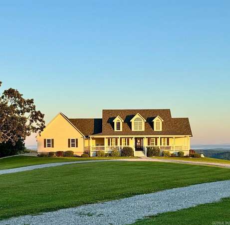 This amazing property offers 3 separate furnished living spaces with which 2 are already established Airbnb & VRBO nightly rentals as well as a working cattle/horse farm. Prop is just 6 miles from Buffalo River in Marshall, AR. This home hosts a panoramic view of the Ozark Mountain landscape with no obstructions for over 30 miles. Perched on top of 94 acres of farmland, this house sits in a class of its own with massive windows to view the stunning sunsets. The open concept floor plan creates a marquis entertaining space. Main house is essentially 2 homes in 1 & each level can be separated. Main level is a 2 bed/2 bath, laundry, large dining room, living room & kitchen with attached garage. Lower level has a full walk-out basement, 3 beds/1bath, full kitchen, laundry rm, large living rm/dining rm & large bonus closet. Lower-level suite (Victory Ranch Homestead) is an established rental on VRBO/Airbnb & generates consistent income. The property also features a 1 bed/1bath log cabin that is also an established VRBO/Airbnb called Victory Ranch Cabin. The views here are home to picture perfect sunsets hand-painted by God. Truly a one-of-a-kind, turnkey ranch, vacation rental and home.