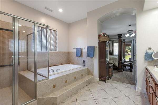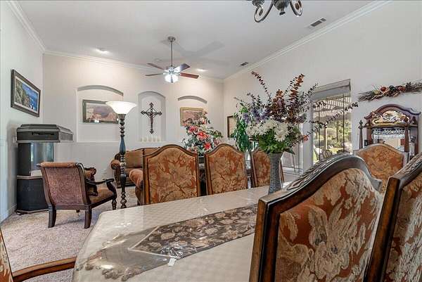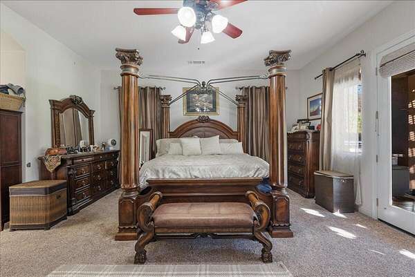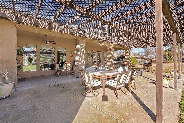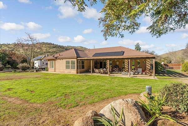 Welcome to your dream home in picturesque Springville! This stunning 3,100 sq. ft. home boasts 5 spacious bedrooms, 3 bathrooms, and luxurious features throughout. From the moment you step into the grand foyer with 20' ceilings, you'll be captivated by the elegance and functionality of this home, featuring 16' ceilings in the main living areas. The kitchen is a beauty with stainless steel appliances, granite countertops, a walk-in pantry, and an open flow into the family room with a cozy fireplace-perfect for entertaining or family gatherings. The formal living and dining areas add to the charm and versatility of the home. Step outside and be amazed by the breathtaking views from the 1.7-acre lot, featuring two outdoor seating areas and a huge covered patio designed for enjoying sunsets or hosting unforgettable get-togethers. The property includes RV parking with a gate and full hook-ups, a spacious 3-car garage, and a paid-off Tesla solar system with two backup batteries for energy efficiency and peace of mind. Practical upgrades include a tankless water heater and two brand-new HVAC systems for year-round comfort. Don't miss this unique opportunity to own a home that blends luxury, comfort, and functionality! Schedule your showing today!