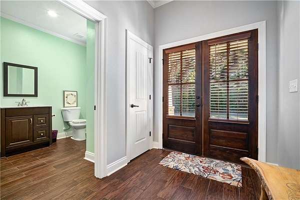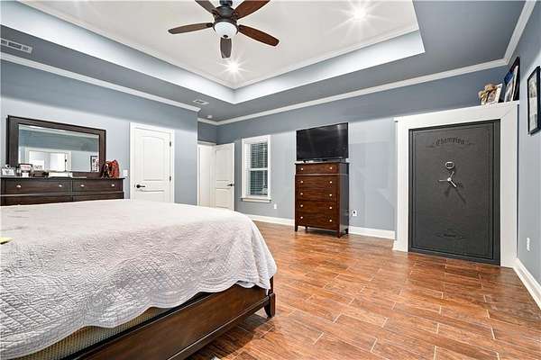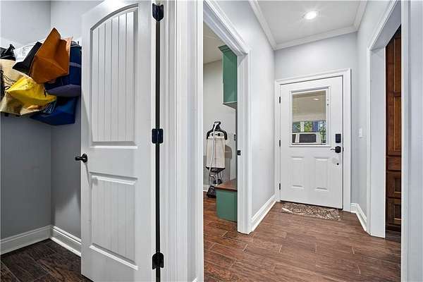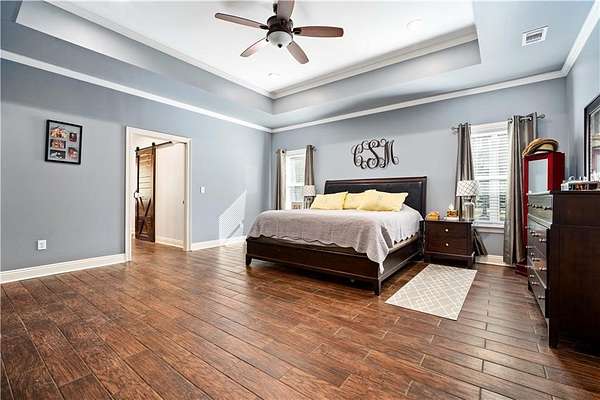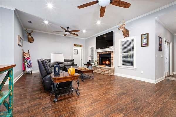 Discover exceptional country living in this custom-built home on 7.5+ acres. Designed with comfort, craftsmanship, and functionality in mind, this 3-bedroom, 2.5-bath split-bedroom floorplan offers both privacy and open-concept living. A set of gorgeous double front doors welcomes you onto the large front porch and into a thoughtfully designed interior featuring wood-look tile flooring throughout-beautiful, durable, and easy to maintain. The spacious family room impresses with a stone gas fireplace, crown molding, and recessed lighting. The kitchen is a true standout, offering an abundance of stained cabinetry, granite countertops, a breakfast bar, island, and stainless steel appliances including an electric smooth-top range, dishwasher, and built-in microwave. A bright breakfast area makes everyday dining convenient and inviting. The oversized primary suite is a retreat of its own with crown molding, tray ceiling, recessed lighting, and even a built-in safe. The spa-inspired primary bath features dual sinks, a large soaking tub, makeup vanity, and a separate walk-in tiled shower with a rain head. The custom walk-in closet boasts beautiful wood shelving. Guest bedrooms are generously sized and positioned for comfort and privacy. An expansive 18x24 screened back porch-complete with ceiling fans, double screen doors, and a mounted TV-provides the perfect place to relax and enjoy the peaceful views of your acreage. This property is fully equipped for work, hobbies, and storage with: 36x36 pole barn with 100-amp power and water. 36x48 workshop on a slab with 200-amp service, plus a full kitchen and bathroom with separate shower! Additional features include a 22kw whole home generator, underground power, city water, and a tankless hot water heater-modern convenience perfectly paired with serene rural living. This is property is also just minutes from Novelis! Offering space, quality craftsmanship, and exceptional amenities, this property delivers the best of country life without sacrificing comfort or accessibility.