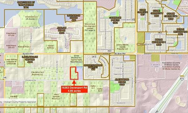 Now available--4.86 acres of A-1 zoned land just off Avalon Road in the thriving Winter Garden area. *This unique property is adjacent to an additional 9.57-acre parcel of vacant land also for sale. For details on the adjoining parcel, see MLS #O6278339 - 3103 Avalon Rd.*