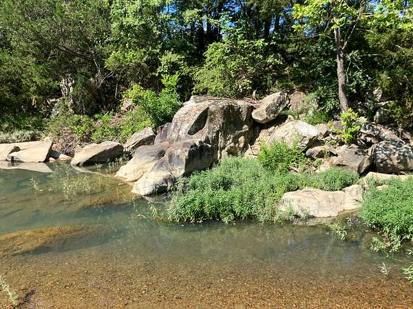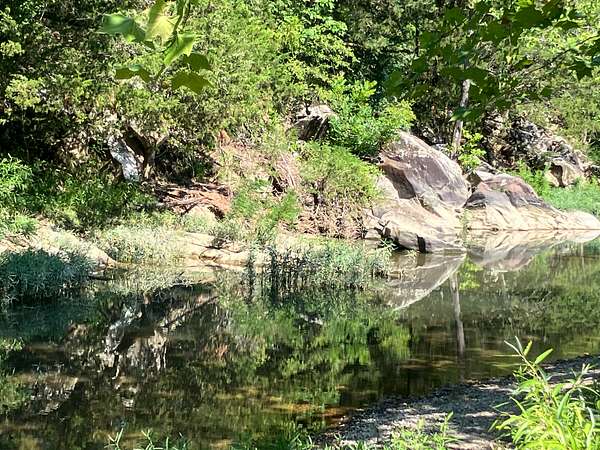 Kiamichi River, which creates the southeast border of the property. Deep Lake Loop Road divides the property with