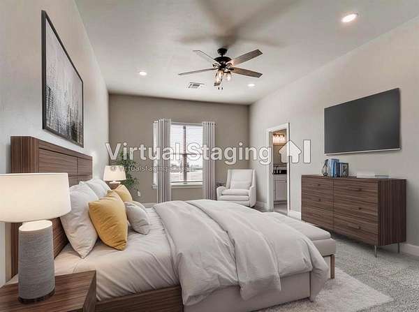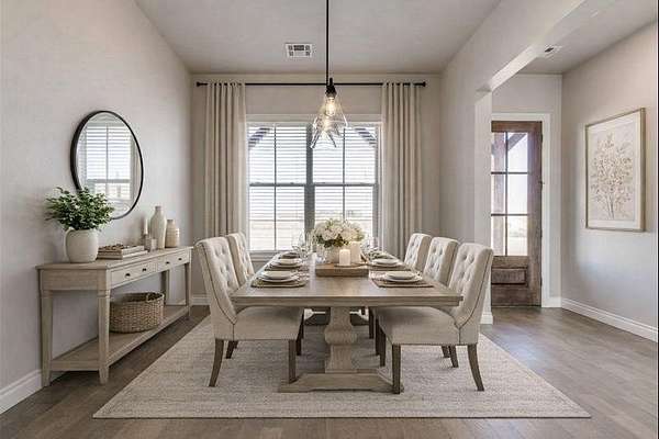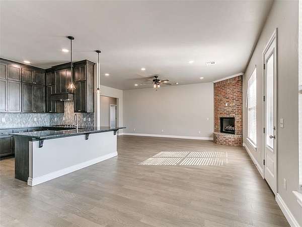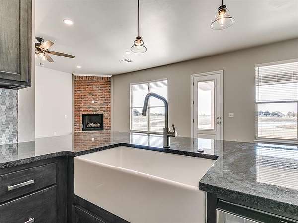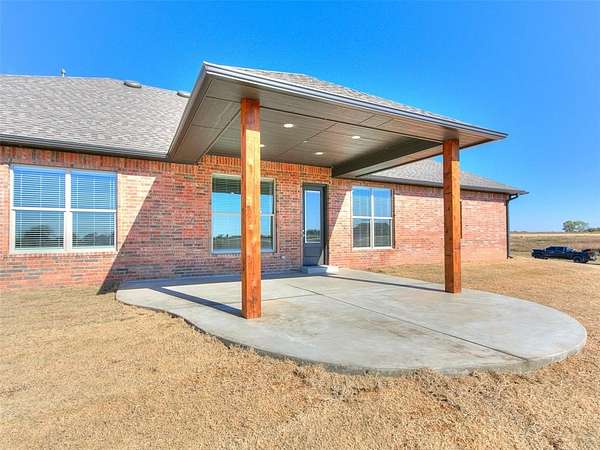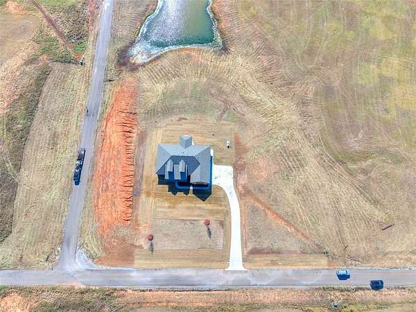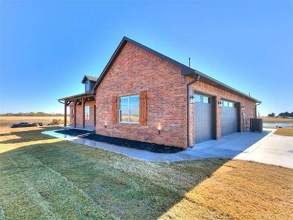 Welcome to your breathtaking new construction home in the prestigious Prairie Farms community of rural Tuttle. Sitting on a 4.5 acre corner lot with private pond frontage, this property offers unmatched serenity, space, and style. The moment you step inside, you're met with a stunning view straight through oversized windows to the peaceful pond an instant wow factor that sets the tone for the entire home! Designed for both beauty and function, the open-concept layout features a spacious living room with a gas fireplace that opens directly into a chef inspired kitchen. Enjoy a gas range, stainless steel appliances, extensive counter space, abundant cabinetry and a large walk-in pantry perfect for storage and entertaining. A formal dining room plus a breakfast nook provides multiple gathering spaces filled with natural light. All bedrooms are generously sized including a luxurious primary suite offering a spa like retreat. The ensuite bathroom features a large soaking tub, his and hers vanities, a beautifully tiled walk-in shower and a spacious closet. Step outside to a covered patio overlooking the pond where peaceful water views and picture perfect sunsets become part of your daily backdrop. Additional features include a 3-car garage, 6 zone sprinkler system, soffit plugs for Christmas lights, full exterior guttering, 10' ceilings throughout, soft close drawers & doors throughout, receptacles in both primary suite vanity drawers and window blinds already installed making this home truly move-in ready. Just 3 miles from Tuttle, this home offers the perfect blend of upscale rural living and nearby convenience. With a prime location just 3 miles from Tuttle, this rare combination of acreage, water views, and new construction won't last long! USDA Eligible