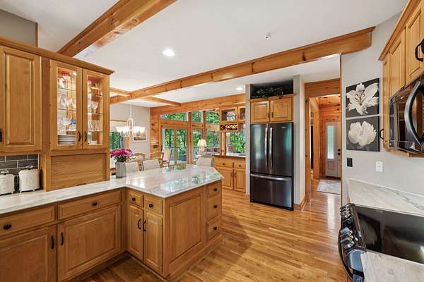 Discover your dream retreat nestled within the scenic beauty of Tennessee. This stunning, beautifully maintained and updated, log home is set on over 5 wooded acres, offering a perfect blend of luxury and tranquility. The spacious residence features three beautifully appointed bedrooms and four full bathrooms, ensuring comfort and privacy for every family member and guest. Numerous bonus spaces provide ample room for various activities and relaxation.