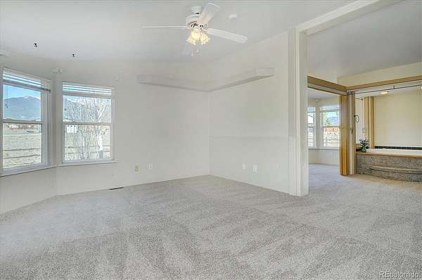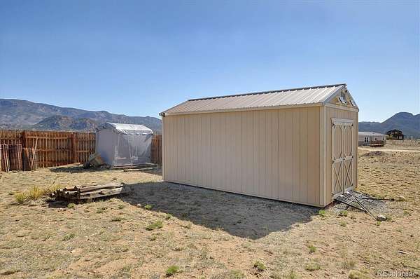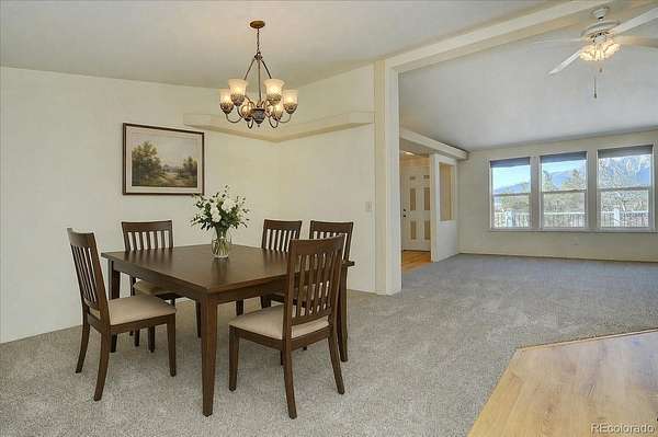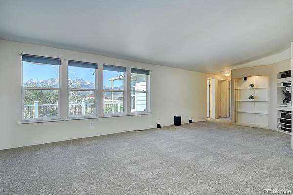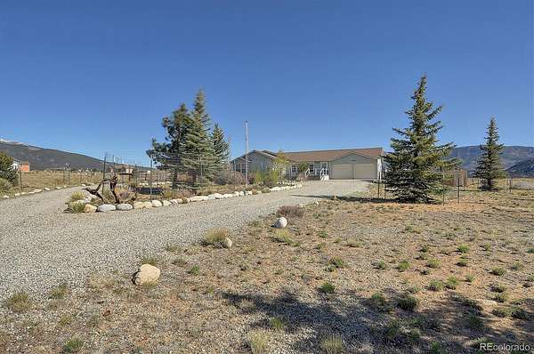 NEW CARPET/FLOORING! Set against a backdrop of sweeping 360-degree views of the Collegiate Mountain Range, this exceptional property offers the perfect blend of peaceful rural living and convenient access to town. Just minutes from downtown Buena Vista and the Arkansas River, the home is nestled in the scenic and serene Upper Arkansas River Valley, where quiet surroundings and stunning natural beauty define everyday life. This well-maintained 3-bedroom, 2.5-bathroom home, built in 1999, features 2,079 square feet of thoughtfully designed main-level living space. Open floor plan filled with natural light welcomes you inside, highlighting a spacious living room where the window coverings in the living room operate remotely and the living room television offers a surround sound, an eat-in kitchen, and a separate dining area ideal for gatherings. Additional living spaces include a sunroom or reading room, along with a laundry/utility room complete with a half bathroom and pantry for added convenience. Primary suite offers a large jet tub and a versatile bonus area perfect for a home office or nursery. Newly installed fiberoptic internet. This home offers a 2-car attached garage with a workshop area to include a large workbench area and additional Craftsman cabinetry. Two additional storage sheds on this property are perfect to house all your toys and more. Step outside to enjoy the beautifully landscaped 2.2-acre property, complete with mature trees and shrubs on an irrigated drip system as well as beautiful no maintenance Trex decking on front and back patio porches. Sunsetter awning with wind speed control to include remote on front patio deck. The backyard is fully fenced and includes a dedicated dog run area, making it both functional and private. A valuable augmented well permit allows for irrigation of up to 5,000 square feet of lawn and garden space, as well as watering for up to three horses—ideal for those seeking a true Colorado lifestyle with room to grow.