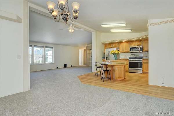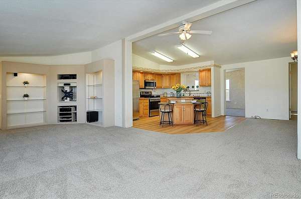 - Breakfast Bar, Ceiling Fan(s), Eat-In Kitchen, Entrance Foyer, Kitchen Island, Laminate Counters, No Stairs, Open Floorplan, Pantry, Primary Suite, Smoke Free, Walk-In Closet(s)