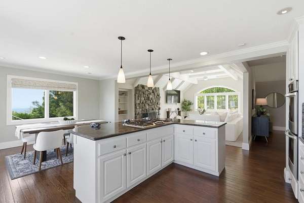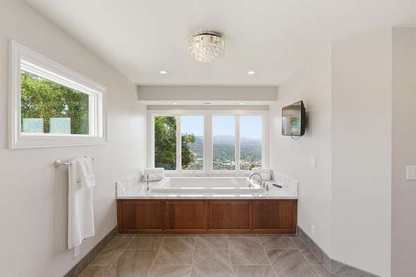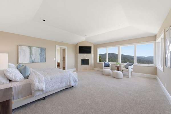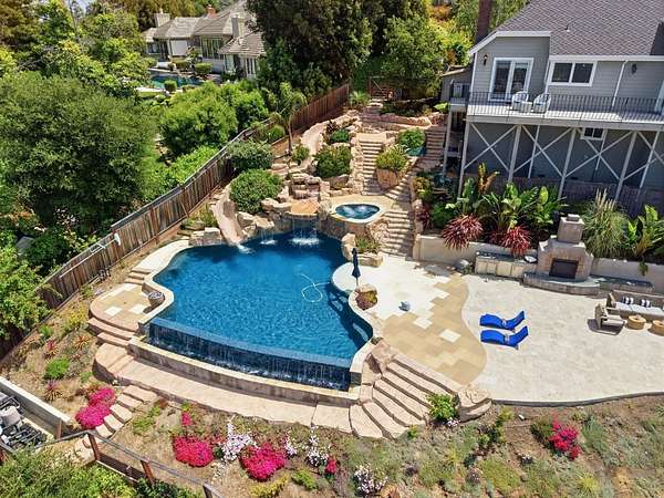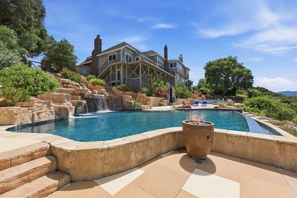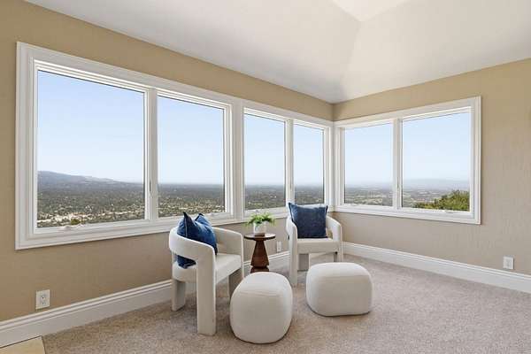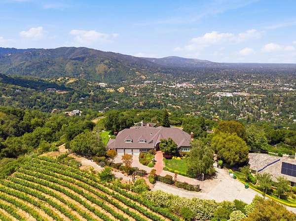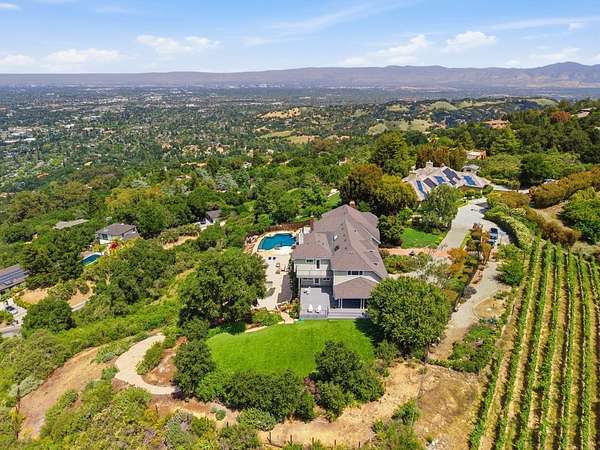Welcome to 16371 Aztec Ridge, a 5-bed, 4.5-bath estate set on approximately 2 acres above Los Gatos, offering sweeping views across Silicon Valley and stretching to San Francisco. A gated entry leads to a beautifully maintained setting with expansive parking and a 3-car garage. Inside, the home opens to a grand foyer framed by walls of glass that capture the surrounding landscape. The main level is designed for both everyday living and entertaining, featuring a chef's kitchen with a walk-in pantry, formal dining room, and multiple living spaces that flow seamlessly to outdoor balconies. The lower level offers a private guest suite, game room, and flexible living areas, along with a pre-built home theater ready for completion. Smart home integration allows for effortless control of lighting and systems throughout. The backyard delivers a true resort experience, highlighted by a walk-in infinity-edge pool with a 75-foot water slide, outdoor kitchen, fireplace, and multiple entertaining areas. A private lookout creates the perfect setting to take in city lights and fireworks, while a large turf area adds space for recreation. Located within the highly regarded LG School District and just minutes from downtown, this property offers a rare combination of privacy and lifestyle.