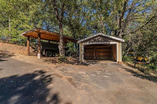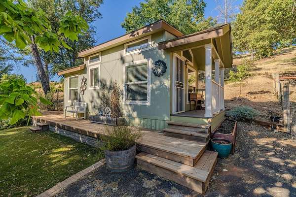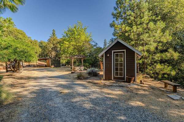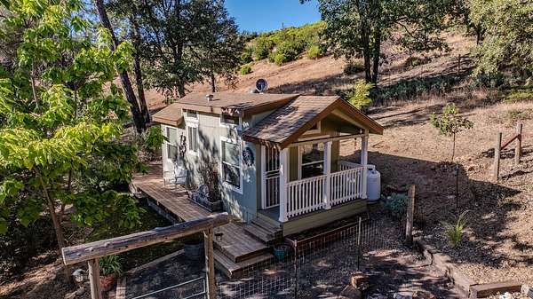 Welcome to 16375 Jesus Maria Rd, Mokelumne Hill - A Unique and Versatile Property with Endless Potential! This 13.32-acre property in the scenic foothills of Mokelumne Hill offers a rare combination of usable land, thoughtful improvements, and flexible living arrangementsideal for a multi-generational setup, income opportunities, or your dream homestead. After passing through the electric gate you will begin at the bottom tier and follow the paved drive way to the top of the hill. On the bottom tier you'll find a 400 sq ft workshop, divided into two separate, lockable unitsideal for a workspace or secure storage. Moving up, the next level features a 40' shipping container with a covered awning, a potting shed, mature wisteria, and a tranquil water feature. This tier also includes a full RV hookup with septic, power, and waterperfect for guests, travelers, or extended stays. Above that is a fully equipped tiny home with its own septic, water, and power. It offers a full kitchen, bathroom with shower, washer/dryer, fenced yard, dog kennel, and a storage shed. A peaceful water feature and shade trees make this space feel like its own private residence. Just off the road nearby is a partial RV hookup with septic and propane. Continuing up, you'll reach the main home, a 2-bedroom, 1-bath residence offering 1,144sq ft of comfortable living. The home includes a propane fireplace, a washer/dryer, and a pool table for entertaining. A small garage, covered parking, and firehose hookup add convenience and peace of mind. In front of the home, enjoy a productive orchard with pomegranates, Fuji apples, apricots, peaches, cherries, and green apples, along with beautiful views of the surrounding hills. At the top tier, a large flat area offers even more usable spaceperfect for additional development, gardens, or recreation. You'll also find three water storage tanks ready for fire protection or extra supply. Property also includes a 340 ft deep well producing 20 gallons per minute. Whether you're envisioning multi-generational housing, a rental property, or a space to host family and friends, this unique retreat has the infrastructure, layout, and natural beauty to make your vision a reality! (Some photos have been virtually staged)
