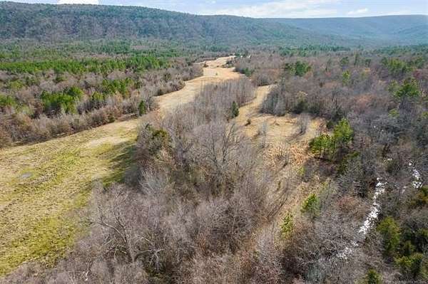 Located just southeast of Talihina, OK in Pushmataha County sits a 372.26 surveyed acre ranch with breathtaking views of the surrounding Kiamichi Mountains. Bowfin Ranch is packed full of potential. Whether you are looking for a recreational hunting ranch, waterfowl hunting, a hobby farm, a cattle ranch, or a horse ranch the Bowfin Ranch fits the bill for all of them. The ranch has access off two county roads, N 4530 Rd and E 1630 Rd, and as you turn in the ranch off of 1630 Rd. you'll immediately notice a 3 bed 2 bath log cabin that over looks well maintained pastures on the frontage and two beautiful water features. The largest of these water features being a stocked 8 acre lake. The lake sets up perfectly for fishing or recreational waterfowl hunters with Oklahoma being in the southern part of the Central Flyway for ducks and geese migrating in the winter. In addition to waterfowl hunting the Bowfin Ranch is an excellent whitetail hunting ranch. Pushmataha County is one of the best trophy whitetail hunting counties in the state and holds numerous state records. There is also the opportunity to turkey hunt, black bear hunt, and the area is known for a few elk as well. With a great mix of pastures and timber, plus over 2 miles of creek bottoms, including Post Oak Creek, the recreational outdoor and hunting opportunities are endless. The log cabin sits elevated and has a great 360 degree view of the ranch plus to the south there is a breathtaking views of the Kiamichi Mountains.