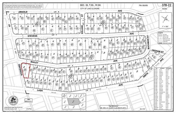 Discover one of the largest lots (9,148 SF ) on Bailey Street, perfectly positioned on the corner of Bailey Street and Stoddard Street in the desirable city of Lake Elsinore. This Residential lot zoned R1, APN: 378-224-056, offers breathtaking views of sparkling city lights and the serene waters of Lake Elsinore, creating an ideal backdrop for your dream home.