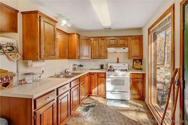 Unique Earth-Contact Home offering a rare blend of natural beauty & endless potential, on 23+ breathtaking acres of virgin timber with a year-round creek & deeded Lake of the Ozarks access. A private retreat for outdoor enthusiasts, a true hunter's paradise, or anyone seeking rural tranquility. Key Features; 3-bedroom (1 non-conforming), 1.5-bath, designed for energy efficiency & low maintenance, Open-concept interior includes kitchen, living room, & family room. Primary bedroom features a private ensuite with an oversized jacuzzi tub. Flexible layout, allowing existing half bath to be easily converted to a full bath, and potential to add additional bedrooms as desired. The expansive 23+ acres of rolling terrain are ideal for hunting, hiking, building a shop/garage, large garden, hobby farm or raising livestock. A year-round creek enhances the property's charm, providing a beautiful backdrop for outdoor enjoyment. Additional highlights include a private well, gated circle driveway, and utility room with W/D and laundry sink. A 10' x 20' metal shed with electricity provides space for equipment & toys. View your new home today and find true solitude with a creek & deeded lake access.