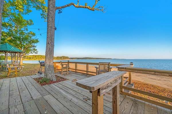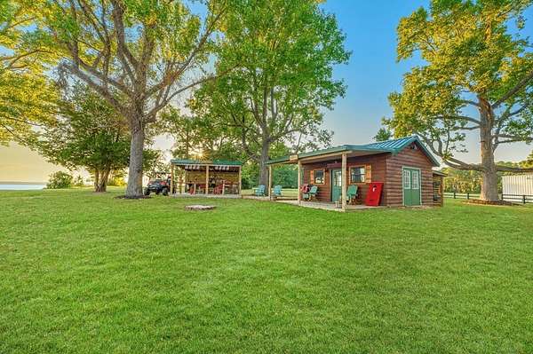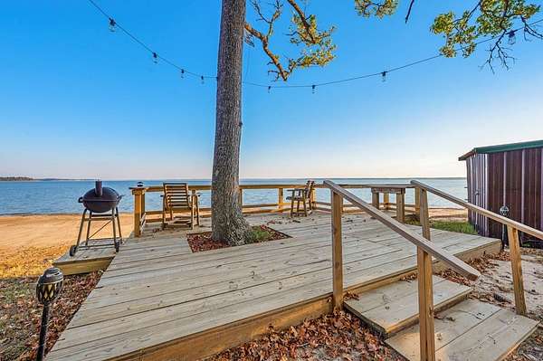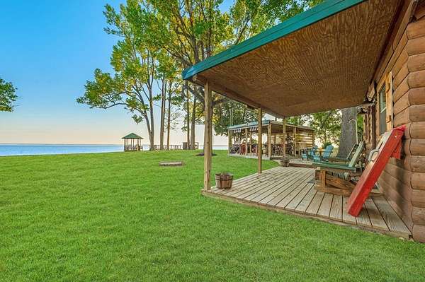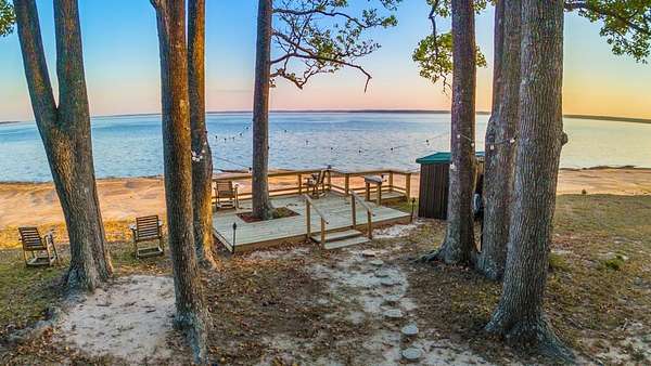 This rare 2-acre waterfront property captures one of the most sweeping 180-degree views on Lake Sam Rayburn where you can enjoy both the Sunrise and Sunsets. A newly installed 75' rock bulkhead secures the shoreline while providing easy access to the water--perfect for launching a kayak, fishing at sunset, or simply soaking in the panoramic beauty that surrounds you. Spend quiet mornings on the deck or in the gazebo overlooking the lake or enjoy peaceful afternoons on the swing beneath the grand tree, watching eagles. A cozy cabin along with an outdoor kitchen brings modern comfort with a new septic system and a 200' private well. The property also includes a 50-amp RV hookup and two 30-amp hookups, offering ample space for visitors to enjoy this one-of-a-kind retreat. Every detail reflects the serene rhythm of waterfront living--where time slows down and every view feels like a postcard.
