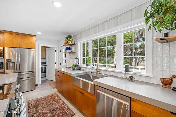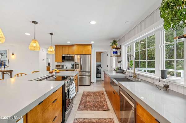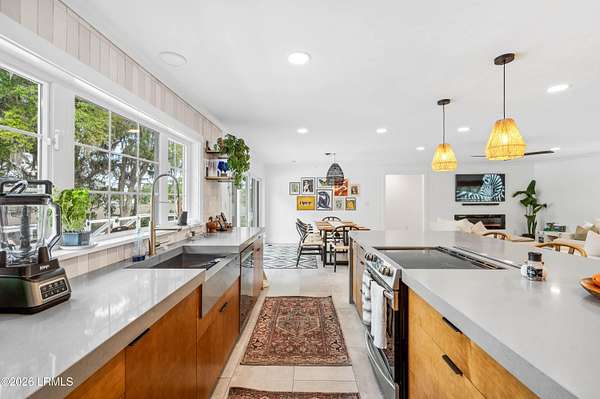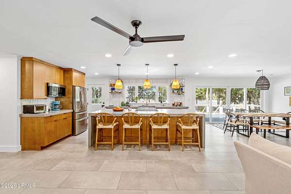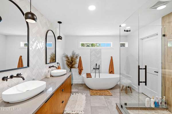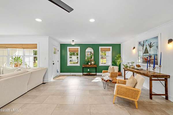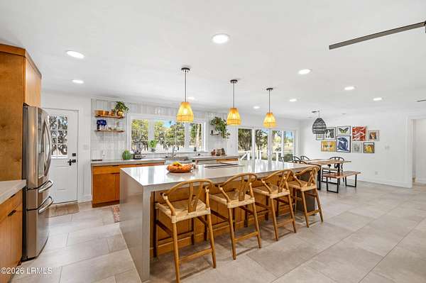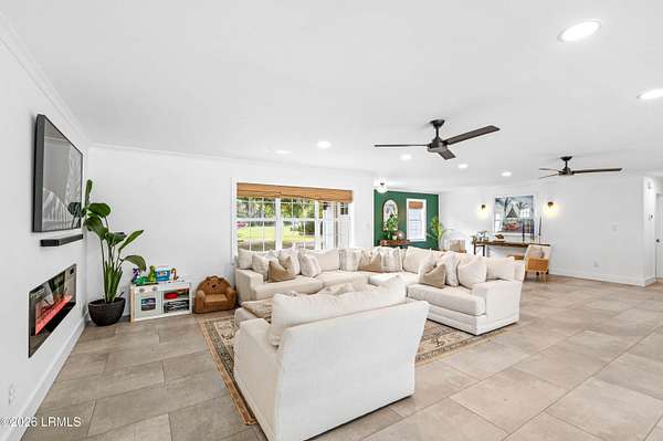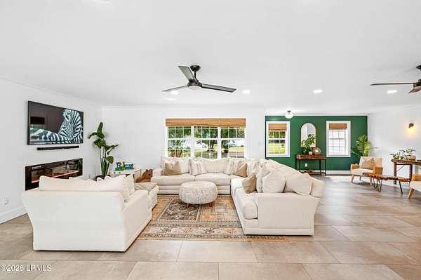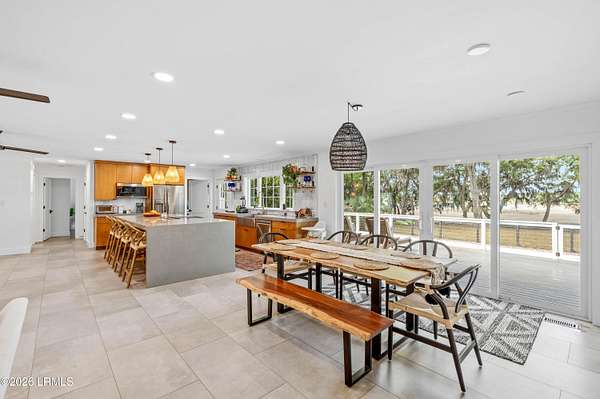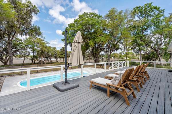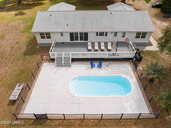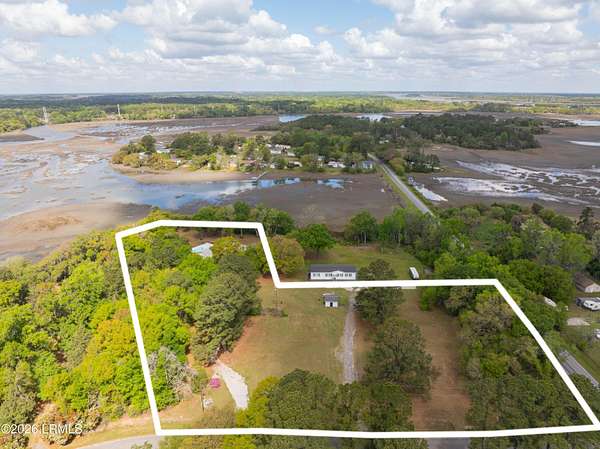 Welcome to a one of a kind Lowcountry ranch where privacy, serenity, and refined elegance come together across 3.79 acres of tidal creek frontage. Just 15 minutes from historic downtown Beaufort, this remarkable property feels like a secluded island retreat. Surrounded by sweeping vistas and the quiet rhythm of the tides, the property feels like a secluded island retreat, offering a rare sense of escape without sacrificing convenience. With no HOA and generous acreage, outdoor living becomes part of your everyday story. Mornings can start with coffee by the pool as the breeze moves through the marsh grasses, while afternoons invite gathering with friends or simply unwinding in complete privacy. As the day winds down, the possibility of a future dock hints at even more connection to the Lowcountry, where boating, fishing, or quiet moments along the water become part of the experience as you enjoy west facing sunsets everyday. Step inside and experience a home completely transformed with bespoke finishes throughout. Every surface, fixture, and detail has been thoughtfully curated to create a space that is inviting, uplifting, and functional. Soft, neutral tones flow across the open concept main level, complemented by all new windows that frame panoramic marsh views and fill the interiors with warm natural light. Modern recess lighting highlight the design while maintaining a calm, Lowcountry inspired ambiance. The heart of the home blends the contemporary kitchen, welcoming dining, and multiple living areas into a space perfect for entertaining or quiet gatherings. A generously sized family room provides additional space for leisure or connection, while the converted garage has been transformed into a fully equipped office ideal for remote work, creative projects, or a private retreat. A dedicated laundry room ensures everyday routines remain simple and convenient. Three expansive bedrooms and two and a half completely renovated baths reflect the customized approach to design. The primary suite is a spa like sanctuary, featuring a soaking tub, walk in shower, premium finishes, and carefully considered details that create a true personal escape. Likewise, every other bath has been updated with high end craftsmanship and refined touches, maintaining a cohesive sense of comfort throughout. A flexible bonus room offers endless possibilities. Use it as a home gym, media or lounge area, yoga or meditation studio, kid's playroom, art studio, additional bedroom or whatever fits your lifestyle. Outside, the property refuses to stop captivating the Lowcountry lifestyle. The backyard faces west and is positioned to showcase breathtaking sunsets. A new deck above the pool connects to the back porch with sliding glass doors, creating an expansive outdoor oasis overlooking the shimmering in ground pool and sweeping marsh. Meticulously maintained landscaping enhances the natural surroundings, with serene pathways, lush greenery, and open areas that harmonize with the home's neutral, organic palette. A workshop that conveys adds versatility for storage, hobbies, or creative pursuits. Taken together, the property offers more than just updated features or acreage. It delivers a fully breathing Lowcountry delicacy. One where space, setting, and design come together to create a home that feels grounded, adaptable, and undoubtedly Lowcountry.