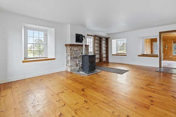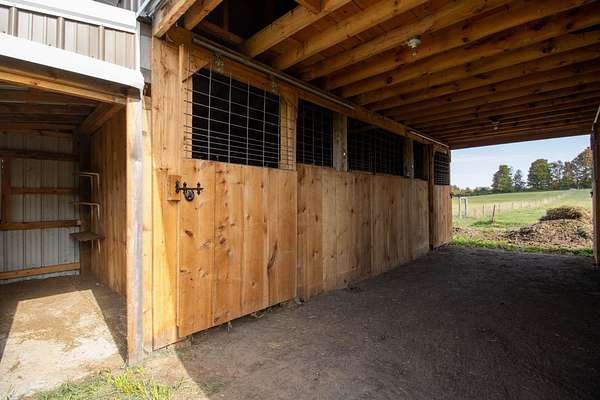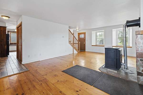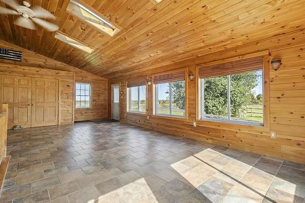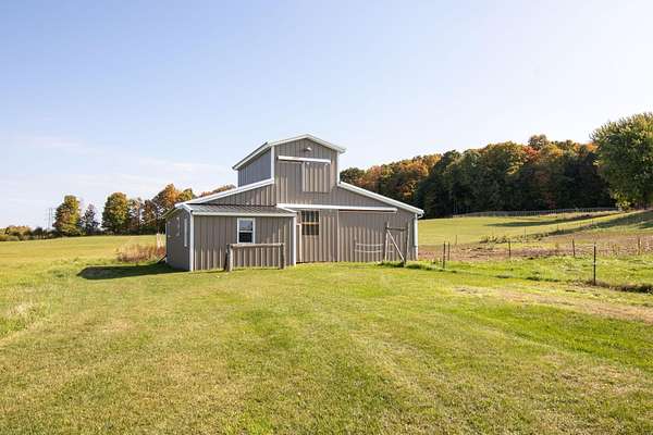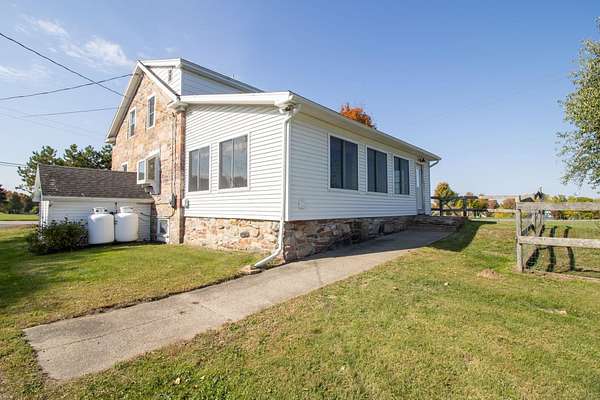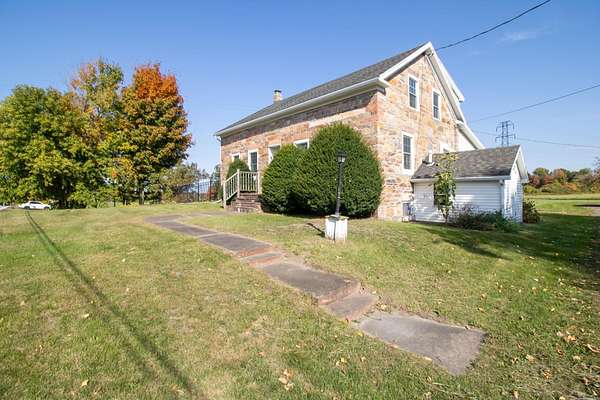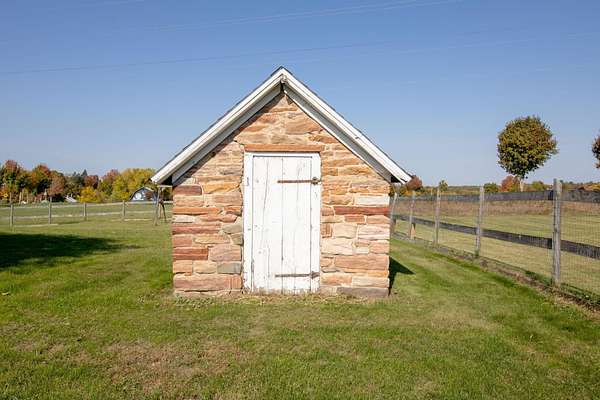 Welcome to this classic style 3-bedroom, 1.5 bath c.1830 stone residence with panoramic views engulfed by 10.78 acres of land with a detached 2 stall garage and a custom-built barn built in June 2020. The barn is equipped with the luxury of electric and water, a tack and grain room, four 12x12 stalls, and a haymow. There are a newly installed electric fence and a Utica Boiler system offering in-floor radiant heat within the home alongside established perennials such as lilac, crabapple, and apple trees throughout the property. Inside, you are greeted by beautiful, wide-plank wooden floors with a bright living room space, accompanied by a Harman pellet stove offering warmth and ambience during the colder months. The sunroom gives bountiful natural light with sensor-controlled skylights and ceramic tile flooring throughout and features a double cedar-lined closet. Unique characteristics throughout, such as 18" deep windowsills offering unobstructed views and an interior stone wall adding warmth, charm, and appeal. If you fell in love with the exterior curb appeal, the interior will truly make your heart skip a beat! This property truly is a dream come true and offers tranquility and peace within a rural setting. WELCOME HOME!