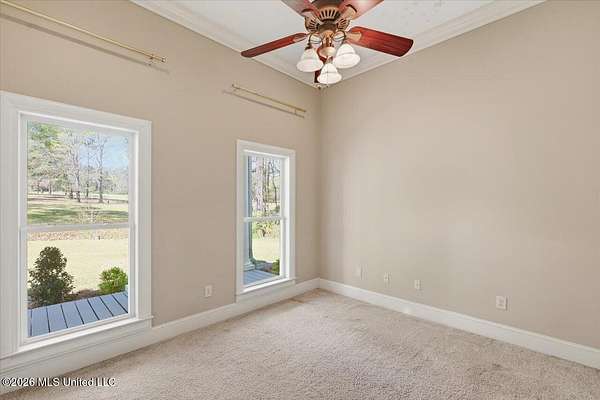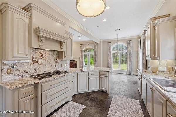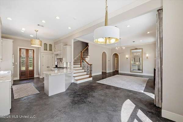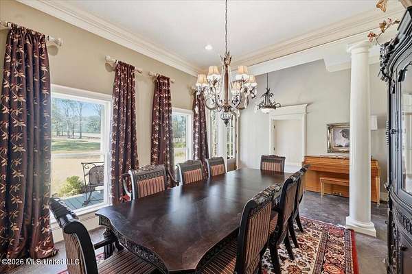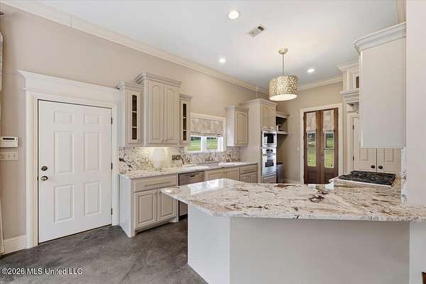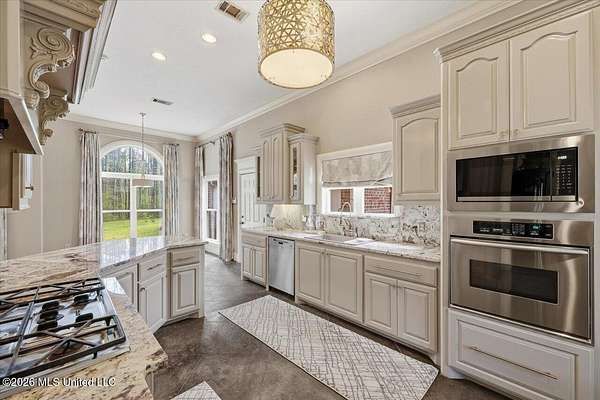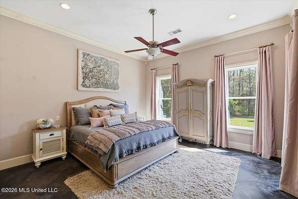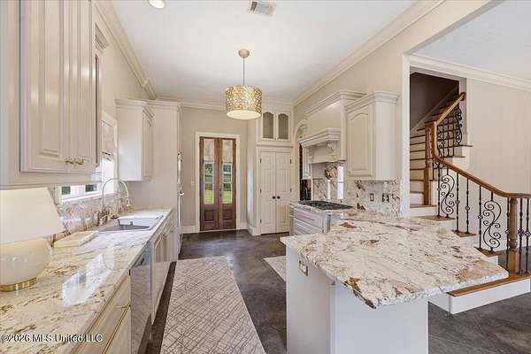 Welcome to this stunning 5-bedroom, 5 bath home, with its beautifully designed living space, perfectly situated on approximately 2.77 acres with a serene wooded yard. From the moment you the enter the beautiful foyer, you'll be captivated by the elegant finishes, including granite throughout, arched french doors and open, flowing floor plan ideal for both everyday living and entertaining. The spacious kitchen features a gas cooktop, breakfast area, extra large oven, and seamless access to living and formal dining area. The main level offers generous living space with the primary bedroom downstairs and guest suite, while upstairs you'll find 3 bedrooms and 3 full baths, complete with walk-in closets, ample storage, and laminate plank flooring. Enjoy outdoor living year-round with covered front and back porches overlooking the peaceful wooded setting. An Additional highlight is the spacious 4 car garage. Schedule your private showing today!