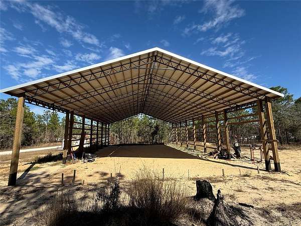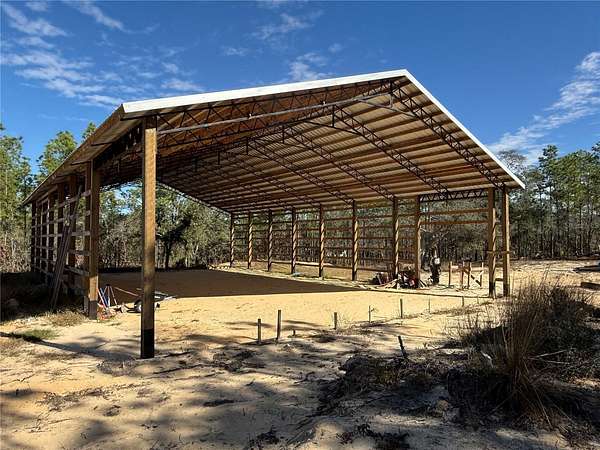 The property includes a permitted 50' x 80' x 15'5" structure with a 4/12 roof pitch. Trusses have been upgraded to durable 2" x 2" tube steel. Interior grading is set to 4", ready for rough plumbing if you choose to continue the barndominium build, or for concrete if you prefer to use the structure as a barn. The garage door measures 16x14 to accommodate larger vehicles. Barndominium plans are available should you wish to complete the original design.