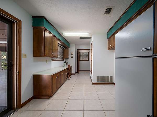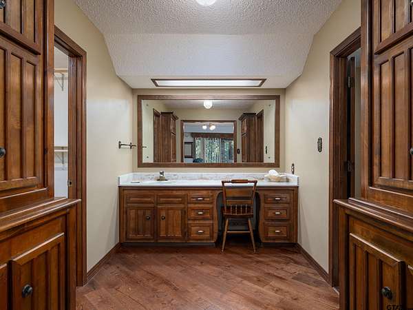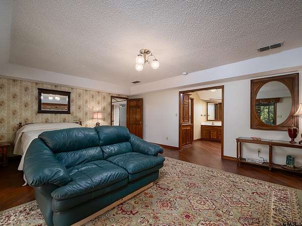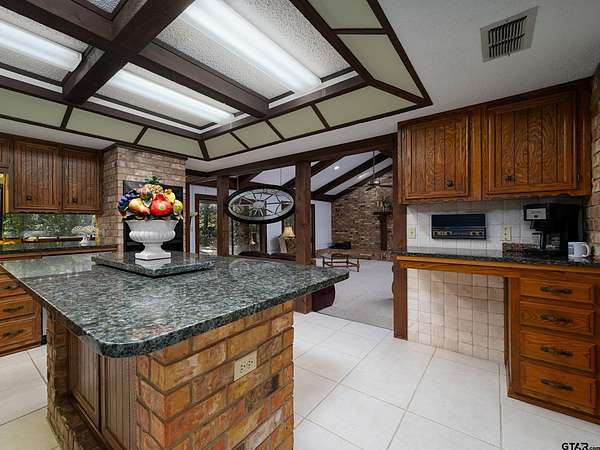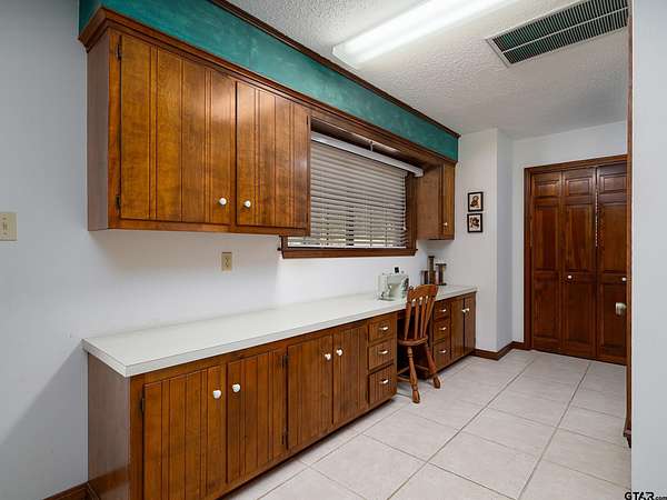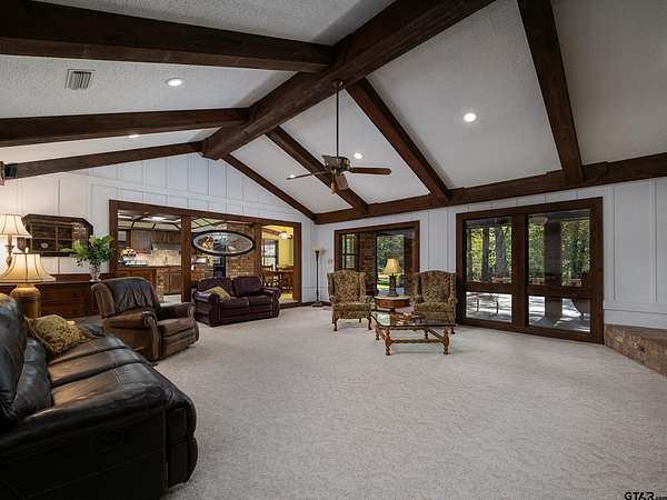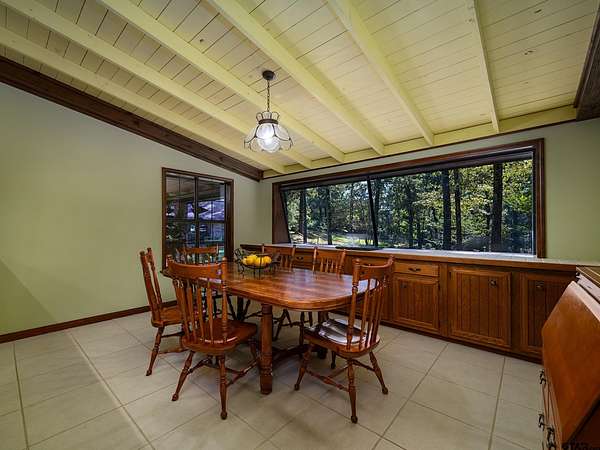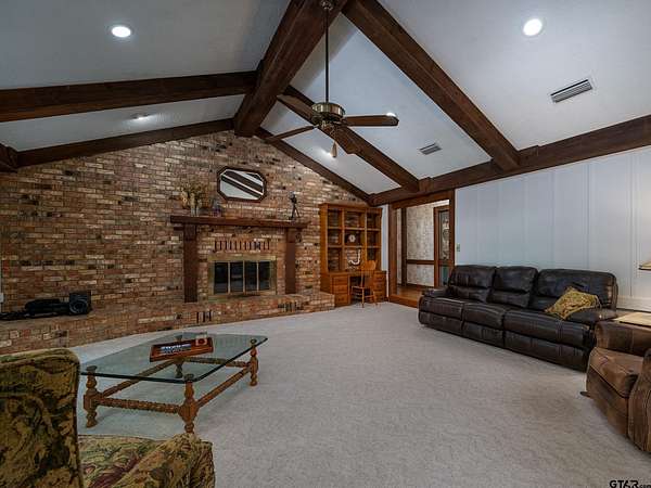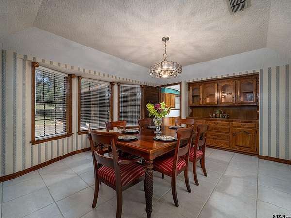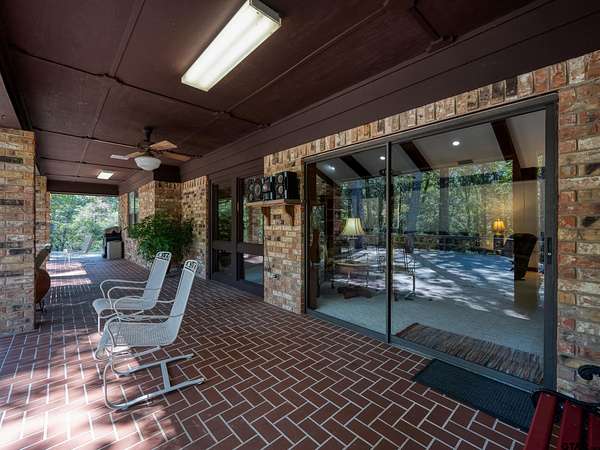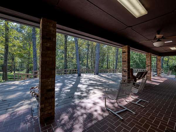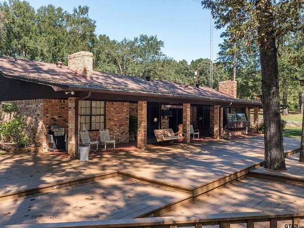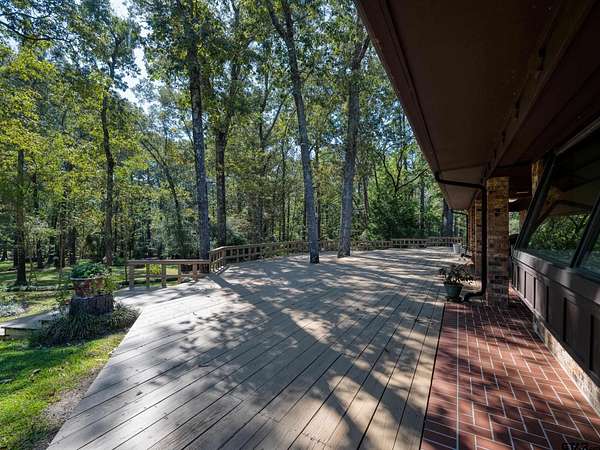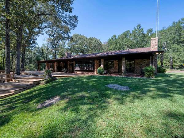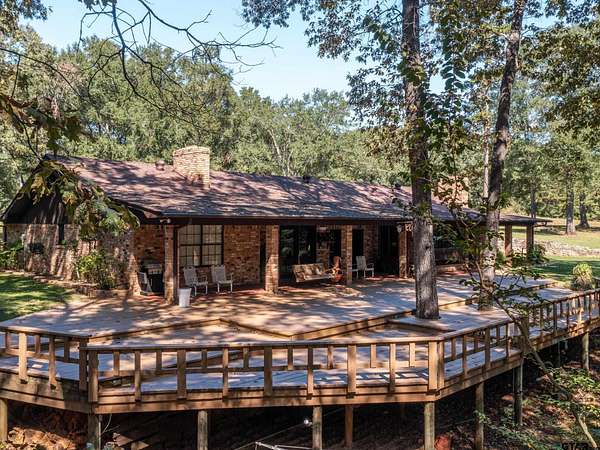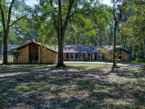Nestled on a beautifully manicured 7.58-acre corner lot in Jacksonville, this one-of-a-kind custom home isn't just a place--it's a legacy. Built in 1980 as a labor of love by a master craftsman known throughout the community for teaching generations of homebuilders, this residence reflects decades of skill, care, and family memories in every square foot. From the moment you arrive to the fully-paved circle drive & porte-cochere, the home welcomes you in earthly elegance & craftsmanship. Hand-built cabinetry and intricate solid wood mouldings showcase a level of detail rarely found today. Solid hardwood doors, precision-installed trim, and custom built-ins throughout the home speak to a lifetime of measuring four times and cutting once--no corner cut, no detail overlooked. With 3 oversized bedrooms and 2 full bathrooms, this 3,145 sq ft home offers both space and soul. The primary suite features its own fireplace for cozy winter nights, large walk-in closet, ample storage, and a seated vanity. The secondary bedrooms are generously-sized with charming built-in desks, bookcases, and vanity. Each space designed with intention & personality. Bathrooms include custom cabinetry, built-in storage, and convenient laundry chutes. Both fireplaces are bricked floor to ceiling with huge hearth spaces exemplifying the warmth this home exudes throughout. An expansive 1,900 sq ft deck extends from the large open den complete platform steps & a wooden railing--creating a natural flow between indoor comfort & outdoor living. Whether you're hosting a cookout, entertaining friends, or sipping coffee on the porch swing, the setting is ideal for connection and relaxation. The outdoor space is equally impressive and thoughtfully planned from the landscape lighting for the trees and the deck, two sprinkler systems, nine outdoor faucet connections, and full-perimeter gutters with gutter guards--tailored for the East Texas piney woods--offer peace of mind during every season. Come see. Come home!