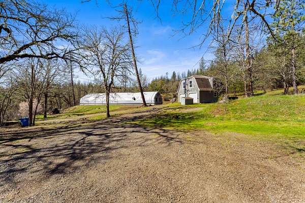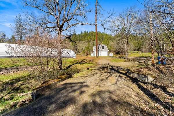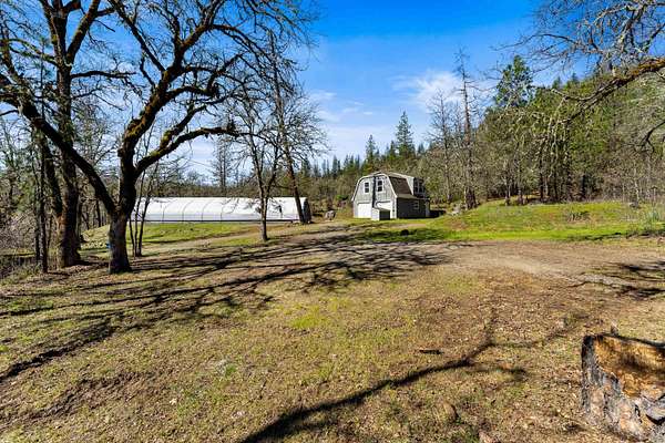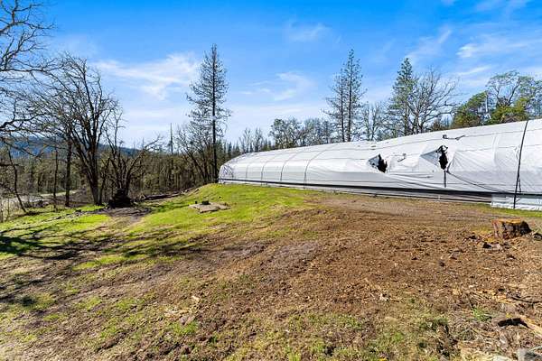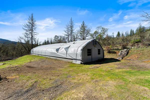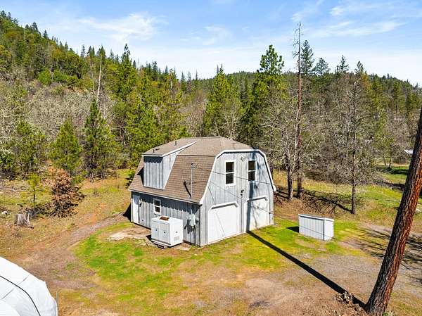 Private 10.3-acre setting with usable land and strong potential. The property previously received county approval for a replacement homesite--buyers to verify current status with Jackson County--offering an opportunity to rebuild while having a functional setup already in place. A finished shop with studio-style living area provides space for use as primary residence, guest use, or living and workspace during construction. Backs to 41 acres of BLM for added privacy and direct access to recreation. Generator and Greenhouse on site supports homestead or self-sufficient living. Located about 7 minutes to Shady Cove and 15 minutes to Lost Creek Lake. Owner is in the process of obtaining permits and DEQ approval for a new septic system. Due to condition, conventional financing may be limited--buyer to perform due diligence. Altered aerial photos are for illustrative purposes only. Actual design and footprint of homesite will vary, if any homesite is available.