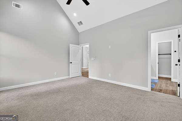 - Double Vanity, High Ceilings, Master On Main Level, Split Bedroom Plan, Tile Bath, Vaulted Ceiling(s), Walk-In Closet(s)