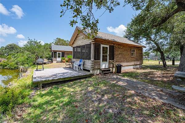 Welcome to your private retreat in the heart of Lamar! The main home features 3 bedrooms, 2.5 bathrooms, a bonus room, and a detached 2-car garage with additional storage space upstairs. Also included are three separate cabins, each with screened porches and pond views-perfect for guest stays or rental income. Set on over 7 beautiful acres with a majestic live oak forest, this unique property includes a peaceful pond surrounded by native wildlife: ducks, herons, hummingbirds, deer, and even the occasional alligator. Watch the whooping and sandhill cranes flight over your own paradise! There's plenty of land to build your future dream home while using the existing structures for income-producing opportunities. With a little sweat equity, this property offers endless potential-whether you're looking for a quiet homestead, a weekend escape, or an investment near the coast. Just blocks from Goose Island State Park, the boat ramp, and some of the best fishing bays in Texas, and only minutes to the Rockport-Fulton community! In the county, outside city limits and NO HOA!