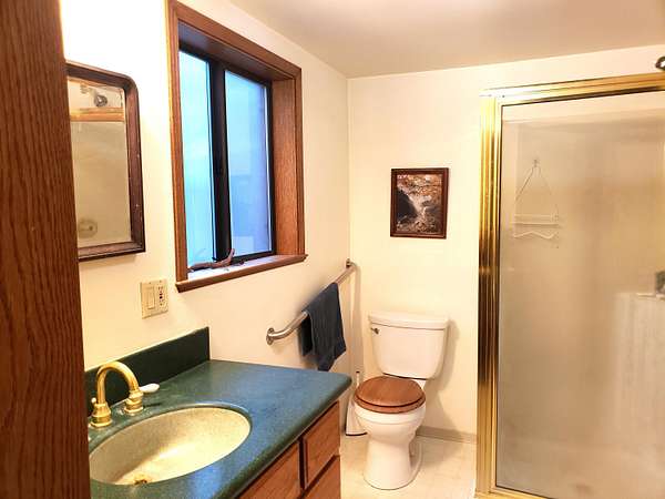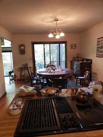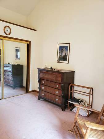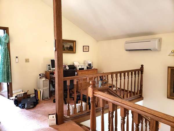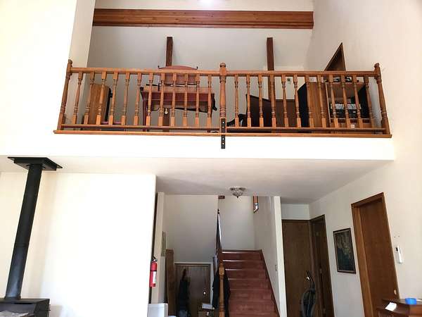 Est $1,913/moA house for all seasons with lots of light centered around the Great room with double slider, stain glass accents and wood stove. Kitchen has oak custom cabinets and central island with JennAir Range. A down stairs bedroom opens to the deck with adjacent bathroom and washer and dryer. Upstairs 2 bedroom on either side have cathedral ceilings and sliders to balconies, large closets. A bathroom with wide tub and shower services both. There is a cute office or winter parlor tucked in the corner of the landing. Come see now.