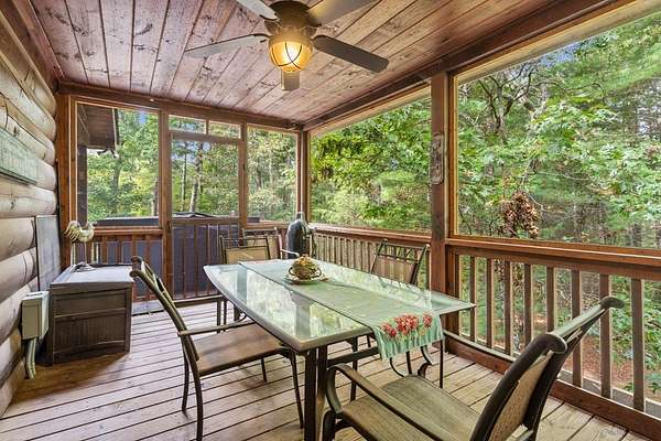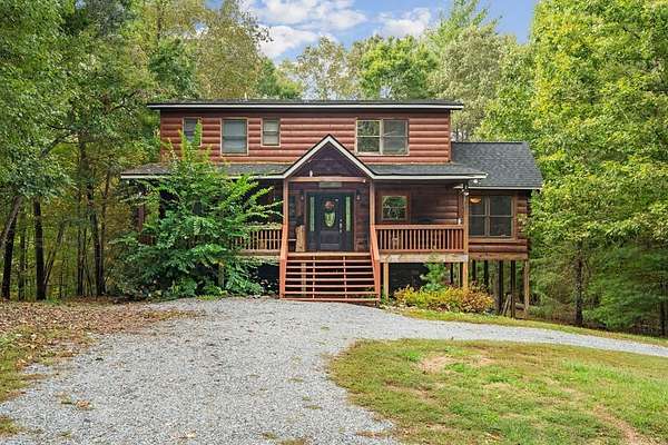 BEAUTIFUL LOG CABIN IN GATED MOUNTAIN COMMUNITY! This 3 bedroom, 3.5 bath home on 2.02 acres features spacious kitchen with Granite countertops and large center island with stainless appliances and tons of cabinets. Large dining area with beautiful views of outdoor scenery or enjoy coffee & fall foliage on your screened porch. Great room offers vaulted ceilings and gas log fireplace. Master suite includes jetted tub and shower. 2nd Master suite upstairs with full bath/shower and private balcony & large loft to enjoy an office or other game area. Fully finished basement with additional large bedroom and and full bath with double sinks. The basement area is another complete living area with full kitchen and stainless appliances. Could be used an an in-law area with separate entrance. Enjoy your outdoor patios on each level with Hot tub or around your firepit. Great front and back porch sitting. Level lot with fenced area for your fur babies. Not far from Blue Ridge. This would make a great short or long term rental or a forever full time home. Assumable VA mortgage under 4% offers an extra bonus for qualified buyer. New roof in 2024 and there are 2 newer A/C units. Basement finished in 2016. MOTIVATED SELLERS!!