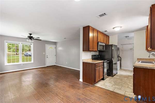 This quaint 1,152 sq. ft. ranch home with 4 bedrooms and 2 bathrooms sits on 5 acres in Louisa County in Mineral. The galley kitchen has newer cabinets and black appliances. The main living area is recently painted, and the home has laminate floors throughout. With plenty of room to spread out, privacy, or for all your toys, this home is a must-see for 5 acres under $300K.