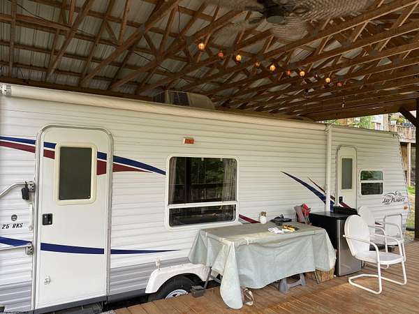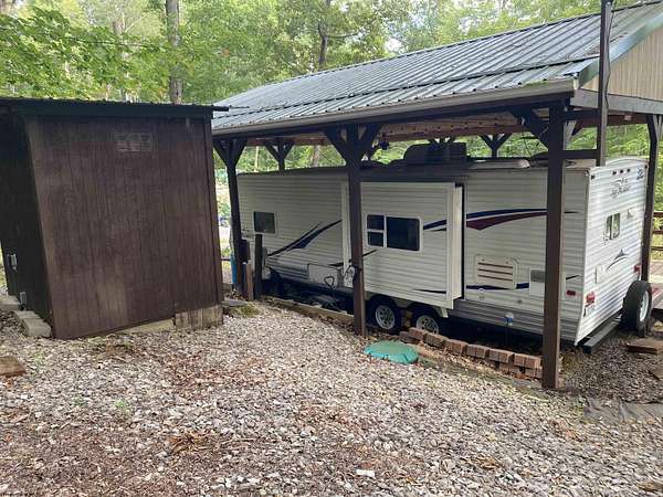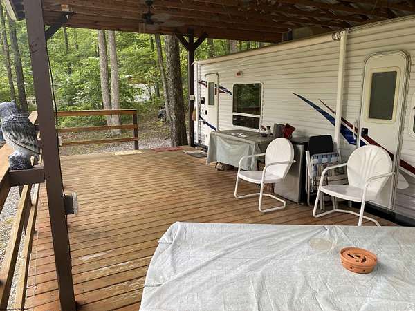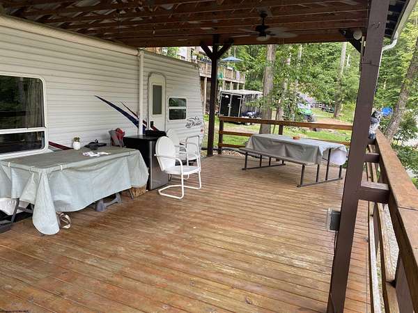 Here is your perfect opportunity to own your very own affordable camp in the popular gated community of Middlefork Campground! Two lots (160x100 ft.) equaling almost 1/3 of an acre. This property features a very well kept 2007 Jayco 8x25 ft. camper that can easily sleep 6 and has its own primary bedroom. Air conditioning and electric/gas furnace and refrigerator. It has a spectacular pavilion and deck that protects the camper from the WV elements and provides a large lighted outdoor space to enjoy the peaceful surroundings! This camp has many thoughtful features such as an well insulated building that stores the 300 gallon certified water holding tank, a certified 350 gallon underground septic holding tank, a nice 8x12 storage building and a large deck/tent pad! Sit by the fire pit and enjoy the evening roasting marshmallows and telling your big fish stories about the fish you caught in the pond and/or river that day. This large double lot has plenty of room to clear more off for another camper or cabin. It has a convenient U-shaped driveway for easy in and easy out parking. Lynx Internet is available. 4 Eufy security cameras will convey. Property corners marked with rebar and pink ribbon. The camp ground/resort does not have an active HOA at this time. Some minor deed restrictions that are not being enforced at this time. See docs. The camp offers a fully stocked catch and release pond/lake, two playgrounds, a large community pavilion and Middle Fork River access! Close to Audra State Park and the Buckhannon River. It is located only 30 minutes or less from Lewis County where there are thousands of acres of public hunting land, Stonewall Jackson and Stonecoal Lakes! This would make the perfect hunting camp base! The community has many activities throughout the year to include an amazing fireworks display 4th of July, corn hole competitions, side by side rides, bingo, occasional concerts and cookouts at the pavilion and much more! At this time, the property owners pitch in for the upkeep of the roads and anything else the park needs. They have a community facebook page that they use to inform everyone what is going on. CHECK OUT THE VIRTUAL TOUR. There is a 24 hour laundromat at the parks entrance for your convenience. THIS IS A GATED COMMUNITY SO NO ACCESS WITHOUT A REAL ESTATE AGENT. This campground offers 365 days a year access. Call to make an appointment for your private tour of this property and all the camp has to offer! SEE AGENT REMARKS. https://www.facebook.com/reel/1493492102784189