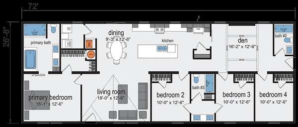 - Bedroom x 4, Den, Dining Room, Living Room
