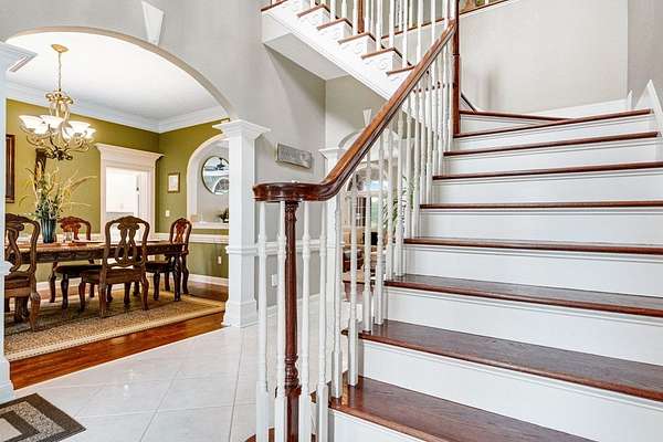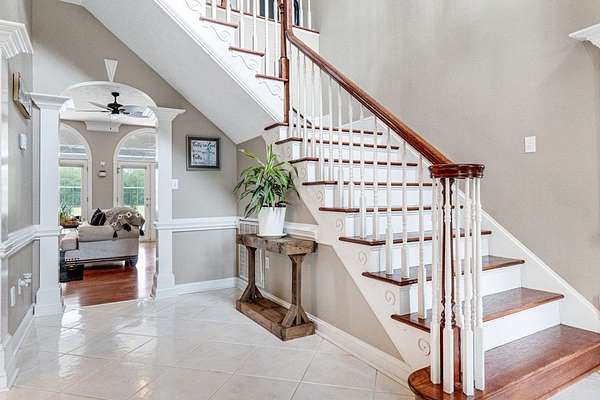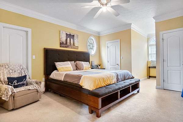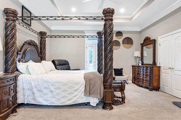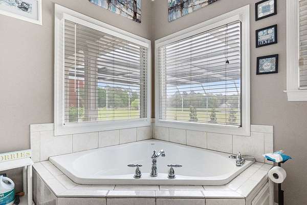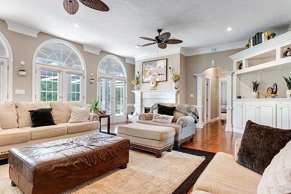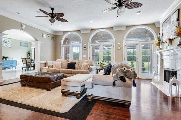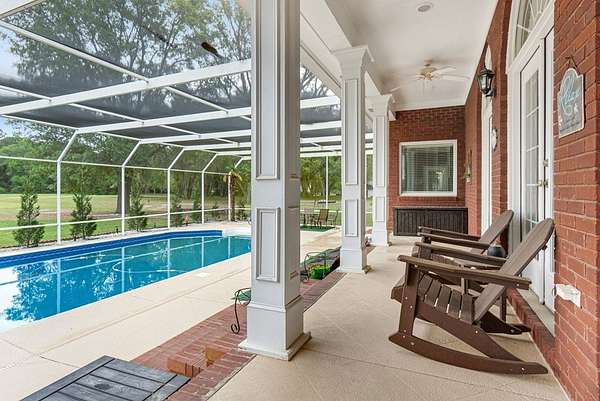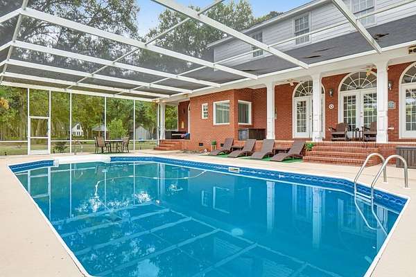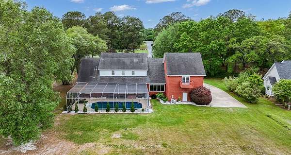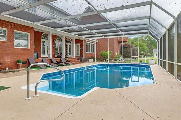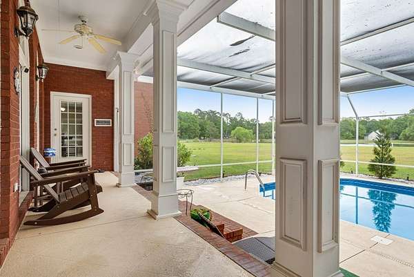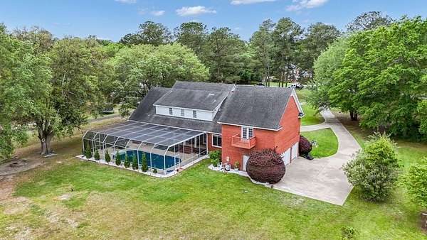 ~ YES, YOU CAN HAVE IT ALL ~ SPACIOUS LEE COUNTY HOME ON 1.86 ACRES WITH A SCREENED-IN POOL! ~ TRIPLE GARAGE ~ ROCKING CHAIR FRONT PORCH ~ ALL BRICK EXTERIOR ~ LAKE VIEWS ~ THREE CAR GARAGE ~ Gorgeous executive home in Lee County's popular Northampton Country Estates! Featuring 4,900 sq ft of living space, 5 bedrooms, 3.5 baths, a BONUS room and tons of storage space! A grand foyer w/ a beautiful staircase, an open formal dining room w/ stunning molding and a private office area located just off of the foyer (or 6th bedroom). The great room is very spacious, has gorgeous hardwood floors which flow throughout much of the living space, a gas log fireplace, built-ins and great views of the pool area and lake! The kitchen features pretty white cabinets, LOADS of cabinet and counter space, granite countertops and a huge eat-in area w/ a large picture window! There is also a back staircase located off of the kitchen for easier access to the BONUS room! The luxury primary suite is located downstairs, has private porch access, a sitting area, a walk-in closet, a double vanity, jacuzzi and separate shower! The additional 4 bedrooms are located upstairs along with 2 full baths (1 jack/jill bath). All bedrooms also have walk-in closets! Upstairs also features a HUGE BONUS ROOM (amazing entertaining space) and a dry bar area. The outside is equally as stunning--- a screened pool with new liner, gorgeous views of the lake, a custom firepit, open paver patio space and large front and back porches! Plus there is a THREE car garage and an impressive circular drive. Many upgrades have been completed including a newer hot water heater, sprinkler system, lots of walk-in attic storage space, surround sound, an alarm system including window and door sensors, updated hardwood floors, new pool Liner (2025), a new septic drainfield (2018), underground fencing and MORE! This Home is in an exceptional neighborhood and location! You will love the use of the pond for fishing and views!