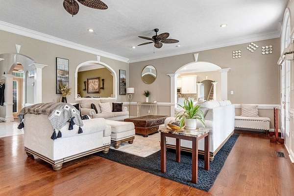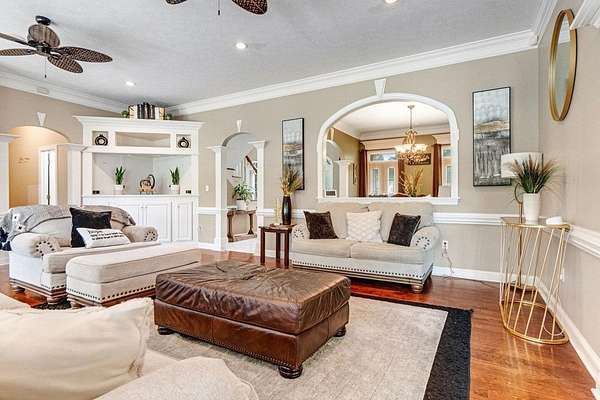 - Built-In Bookcases, Crown Moulding, Granite Counter Tops, Lighting Recessed, Pantry, Separate Shower Primary, Sitting Area Primary, Specialty Ceilings, Split Floor Plan, Walk-In Closets, Wide Baseboard
