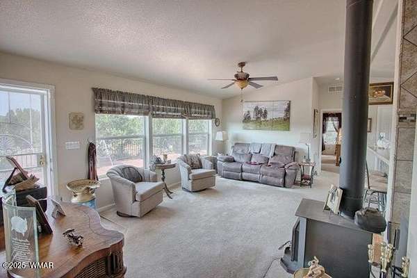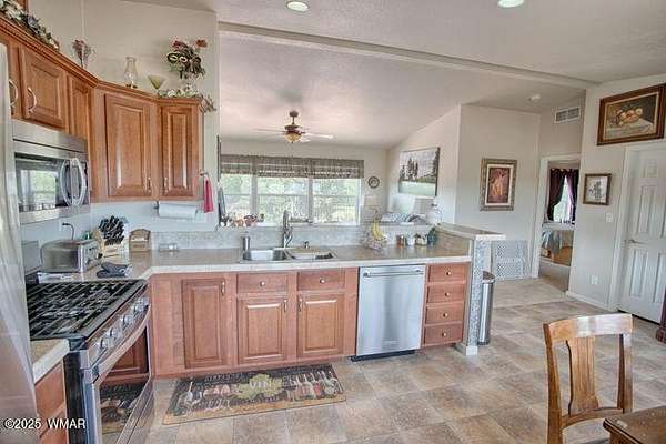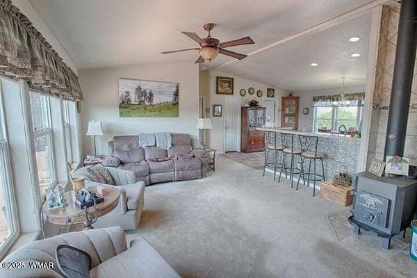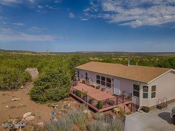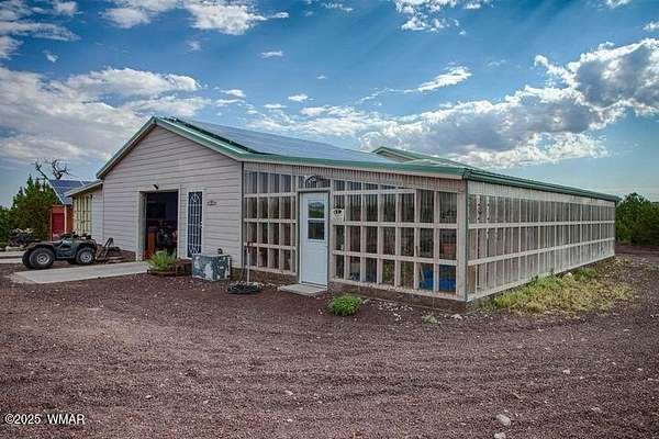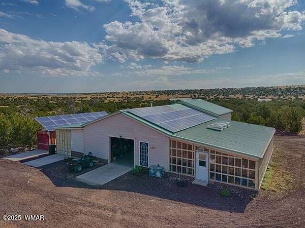 Own your piece of a getaway paradise with this 17.34 acres parcel with beautiful 1664 sq. ft. premium custom built American Freedom by Champion manufactured home with beautiful addition, multi-use oversize garage, including a separate kitchen, dining area and full bath. Oversized garage and workshop with attached mega storage Add to all this, is a huge climate controlled greenhouse and several covered hay or equipment canopies. Endless views of beautiful sunsets and surrounding countryside frequented by deer, elk and wild turkeys Served by solar power, APS power and its own well that produces wonderful abundant water. This is truly a self-sufficient property. Completely fenced and cross fenced. gated entrance and ready for you to start living the really good life.