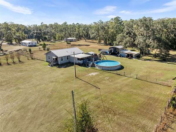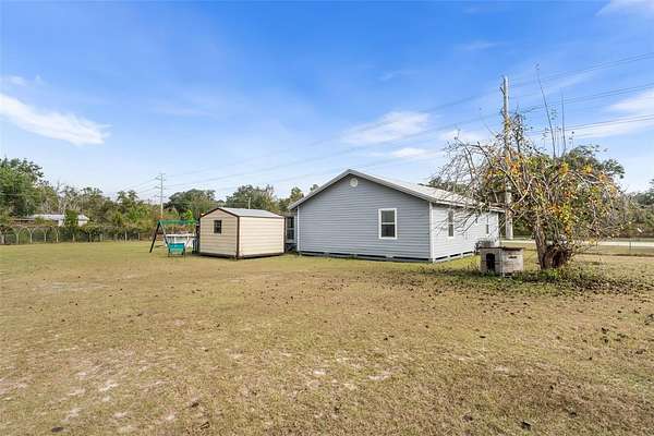 Outside, on the enclosed porch, you'll find a second kitchen and another full bathroom- perfect for pool days or outdoor entertaining. Relax year-round on the expansive 21x21 screened deck, with an additional 16x12 pool deck. Enjoy your salt water pool year round too since it's heated. Go ahead and bring all of your toys because approximately 2 of the almost 3 acres are cleared and fully fenced with two large gated entrances. You'll love the 27x40 metal garage with a 10,000-lb car lift and room for a workshop. The concrete floor and high ceilings of this garage make it just the right fit for your truck, RV, or boat. The road won't be a problem for your toys since it is paved right up to the house. The sellers have thrown in a 12x12 shed to store even more. If that wasn't enough, there is a 30 amp RV hook up with septic. Looking for a mini farm? There's a spacious 26x15 chicken coop to get you started. You can have all kinds of fun with that uncleared acre you have behind you.