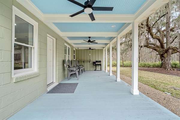 Equestrian or country living in Seabrook, Beaufort, SC. Set on just under five acres of mostly cleared, partially wooded land, this exceptional property sits before nearly 5,000 acres of protected Lowcountry preserve forest rich with wildlife and unspoiled beauty, where owls are often heard and seen alongside deer, turkeys, pheasants, doves, and fox. The immaculately maintained and thoughtfully updated 2-bedroom, 2-bath cottage features an open floor plan, ample storage, an updated kitchen, and a generous back porch overlooking the preserve, framed by oak trees, camellias, tea olives, Spanish moss, and palm fronds. Long dirt roads-approximately five miles-create an Old South sense of arrival and serve as peaceful leisure or riding trails, gently shifting the pace of life while remaining close to Beaufort, Savannah, Hilton Head, Bluffton, and Charleston. The equestrian-friendly grounds include a well-appointed barn with covered stalls, a dedicated workshop barn, fenced pastures, and nearly five acres offering privacy, expansion potential, or quiet open space, with no restrictions or HOA. Wrapped by Huspa Creek and Whale Branch River, with public boat ramps and dock just 2.1 miles away accessing those waters. Also nearbu is quick access to salt water & fresh water boating & fishing rivers of Wimbee Creek, the ACE Basin, and the Combahee River. Historic downtown Beaufort, South Carolina is approx 20 miles away and defined by its picturesque waterfront park, marina, acclaimed dining, and boutique shopping, all gracefully set along the Intracoastal Waterway. Hunting Island State Park & Fripp Island approx 39 miles away. Have it all at 164 Paige Point Bluff. This a truly special part of the Lowcountry where land, water, and lifestyle converge. Short term rentals may be allowed, buyer to verify & apply with Beaufort County.