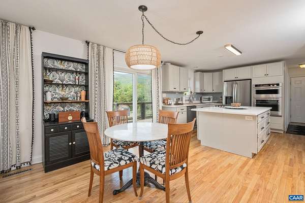 Stunning Afton retreat located along the Nelson 151 Trail. This property offers the ultimate blend of mountain & pastoral beauty. The main level radiates warmth w/ hardwood flooring throughout. At its center is a chef’s dream: a newly updated kitchen featuring sleek cabinetry, Quartz countertops, and brand-new appliances. The flow continues into a spacious dining room for hosting, and a serene primary suite with a renovated spa-like bath with custom tile steam shower & modern soaking tub. Upstairs, you’ll find three generous bedrooms & another beautifully updated full bath. The walk-out lower level is a versatile powerhouse, featuring a cozy family/game room, media room, a full bath, and a second kitchen—an ideal setup for a private guest apartment or short-term rental. Outside is a nature lover's paradise. Relax among vibrant perennial gardens, or harvest from the fenced garden w/raised beds. Complete with a winding creek and lush pasture area it is ideal for the equestrian enthusiast. Expansive indoor and outdoor entertaining spaces make it perfect for a full-time residence or a premier second home. Bring your horses, bring your friends, and welcome home!